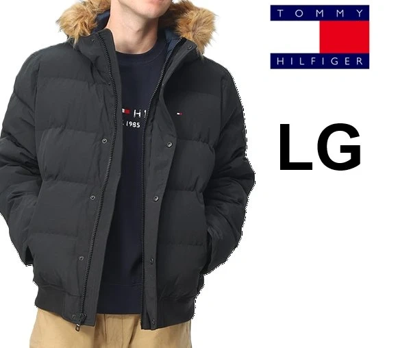 * Classic Tommy Hilfiger flag embroidery on left chest, round rubber logo patch on left sleeve, and "HILFIGER" screen-print down back lining fabric