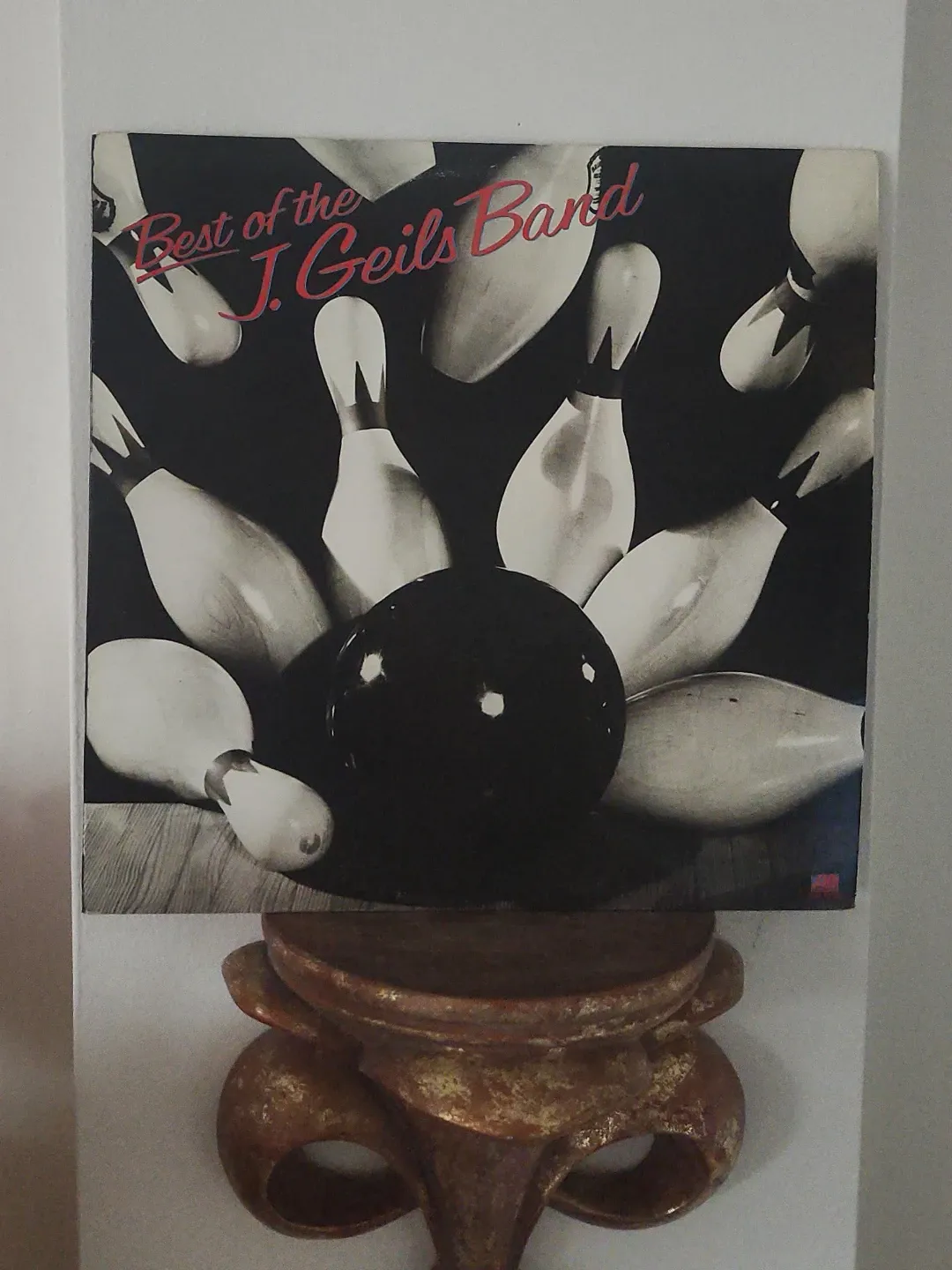 This is the "Best of the J. Geils Band" vinyl record. It features a classic album cover with bowling pins and a bowling ball. A must-have for any rock music collector! NO SKIPS!