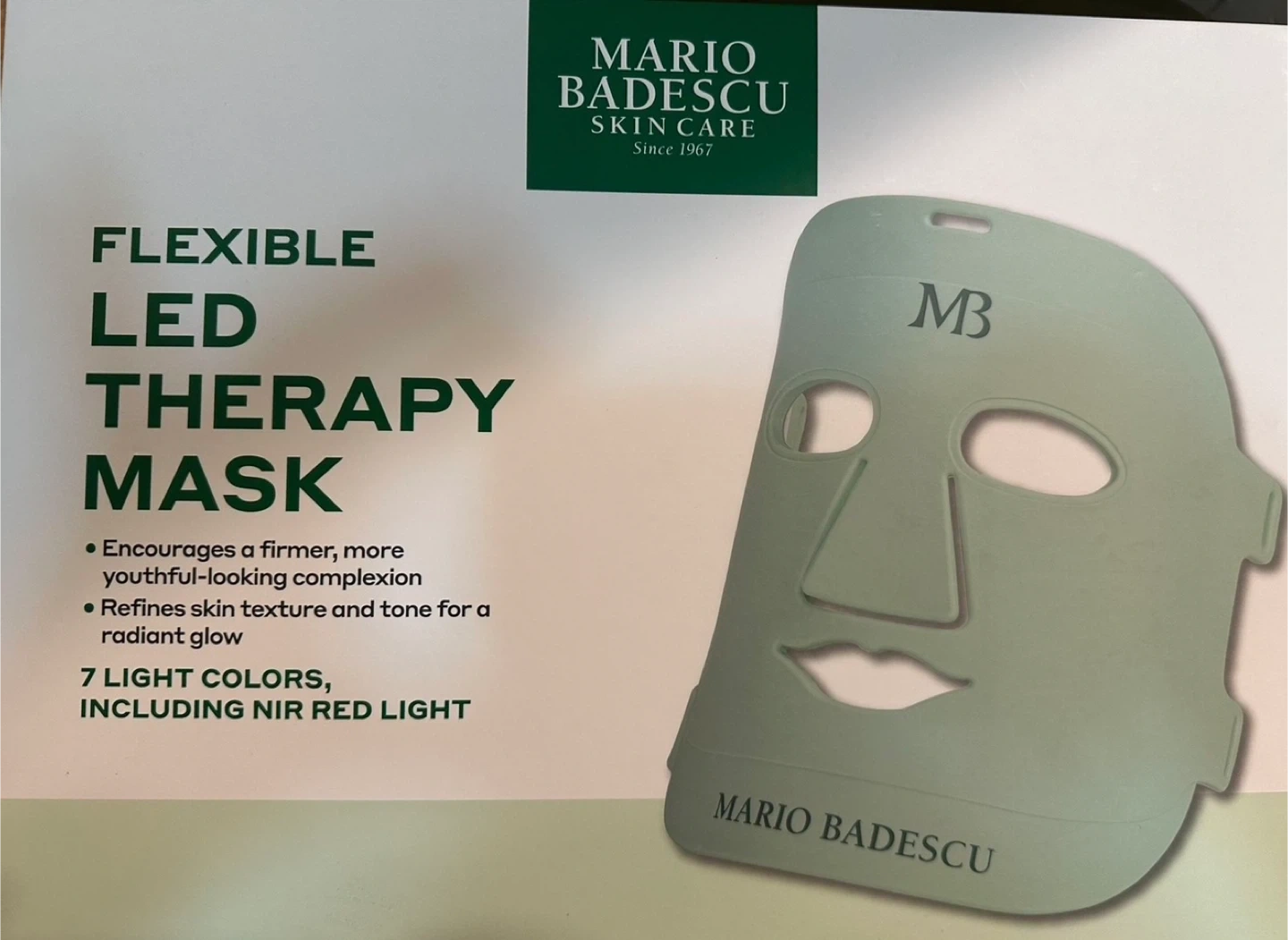 I'm selling a Mario Badescu Flexible LED Therapy Mask. This mask uses 62 LED lights to enhance your skincare routine, promoting a firmer, healthier-looking complexion. It includes 7 light colors to address different skincare needs: NIR + Red, Blue, Green, Yellow, Cyan, White, and Violet. The mask encourages a firmer, more youthful-looking complexion and refines skin texture and tone for a radiant glow
