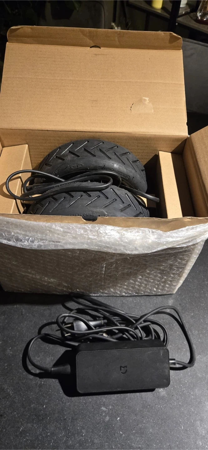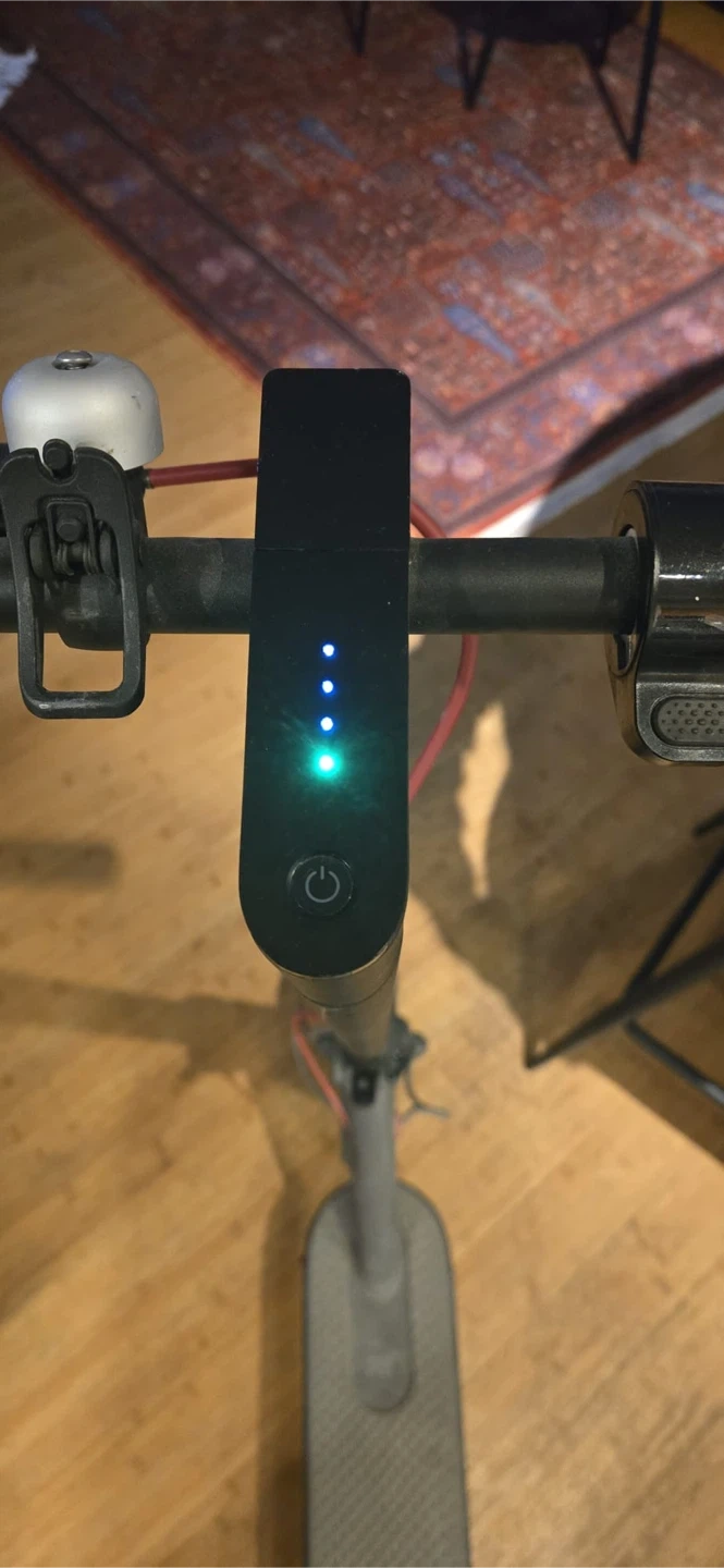 Xiaomi Mi electric scooter in black. It's in good working condition with a charger included. Battery indicator lights are green. This scooter's foldable design makes it easy to store and transport.