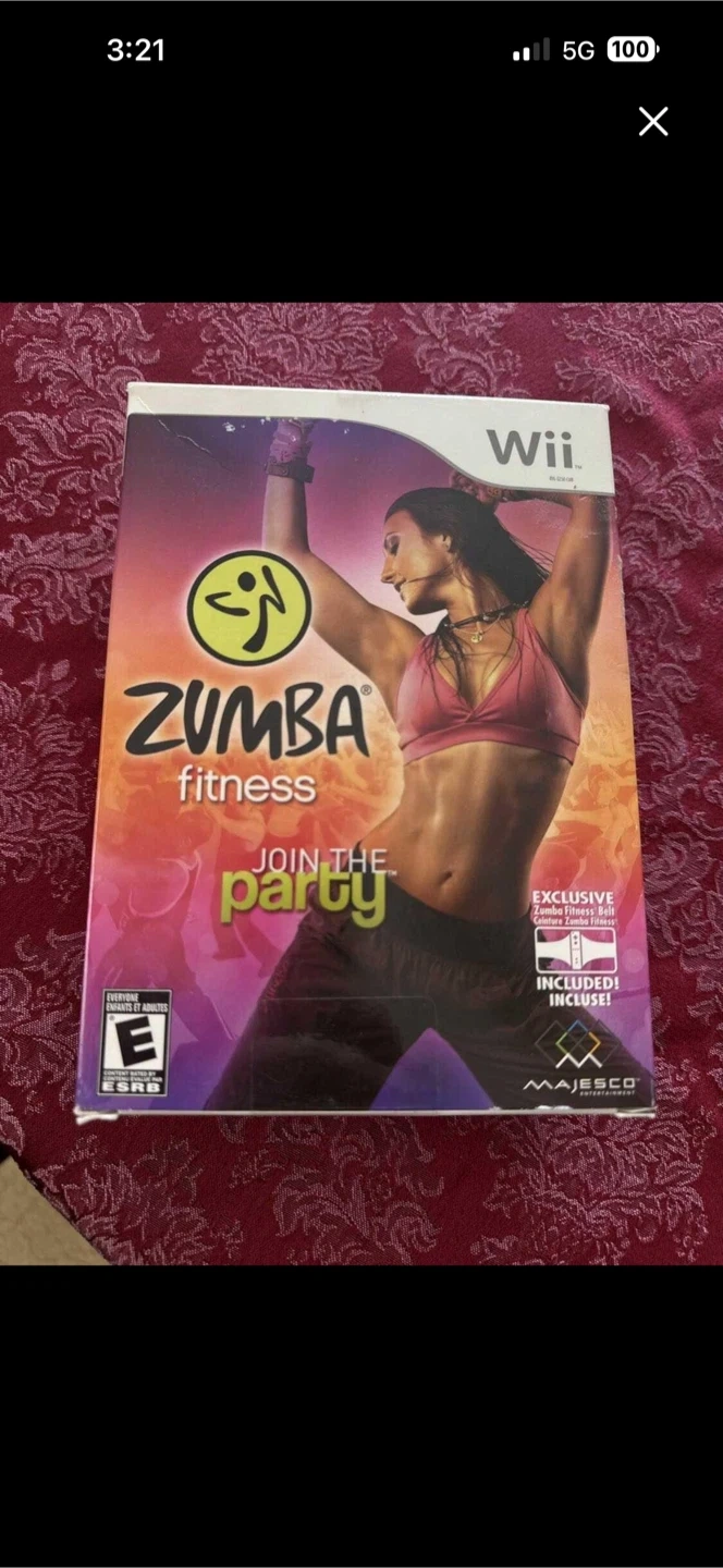 White Nintendo Wii console, comes with power adapter, AV cables, and two controllers. It also includes the sensor bar for motion tracking. This gaming console is ready for some fun! Has a little discolouration from sitting in the sun.Plus Zumba - used once