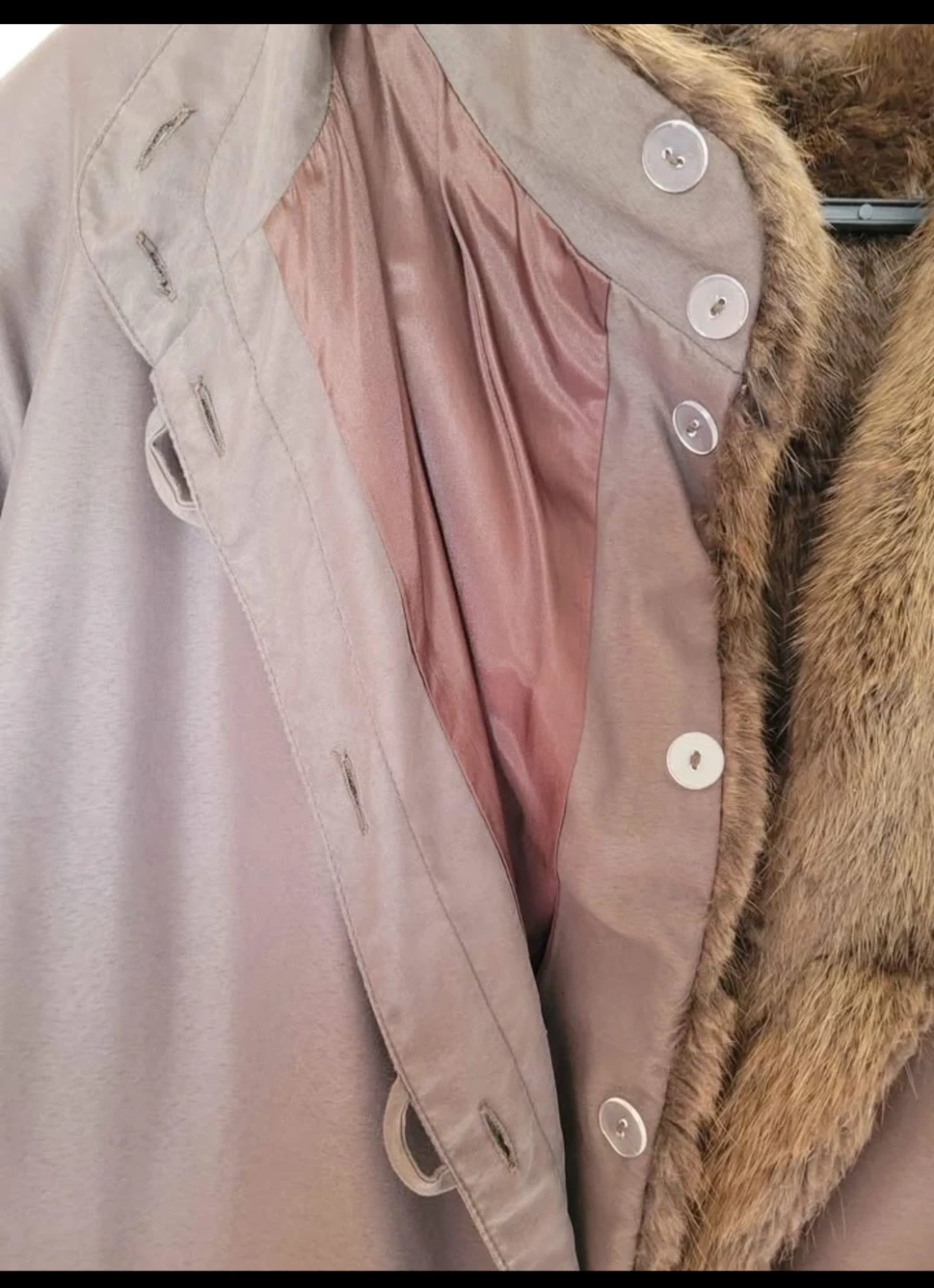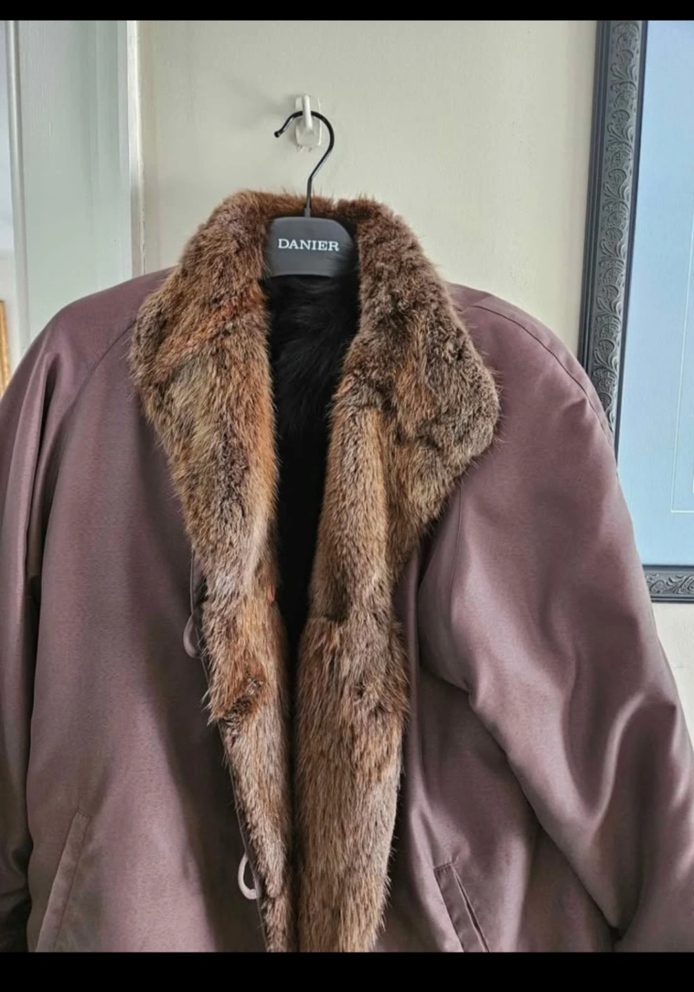 Exquisite design, recycled muskrat liner with as new outer shell. The inner fur is in good shape and the outer layer is like new. It can be removed for cleaning.