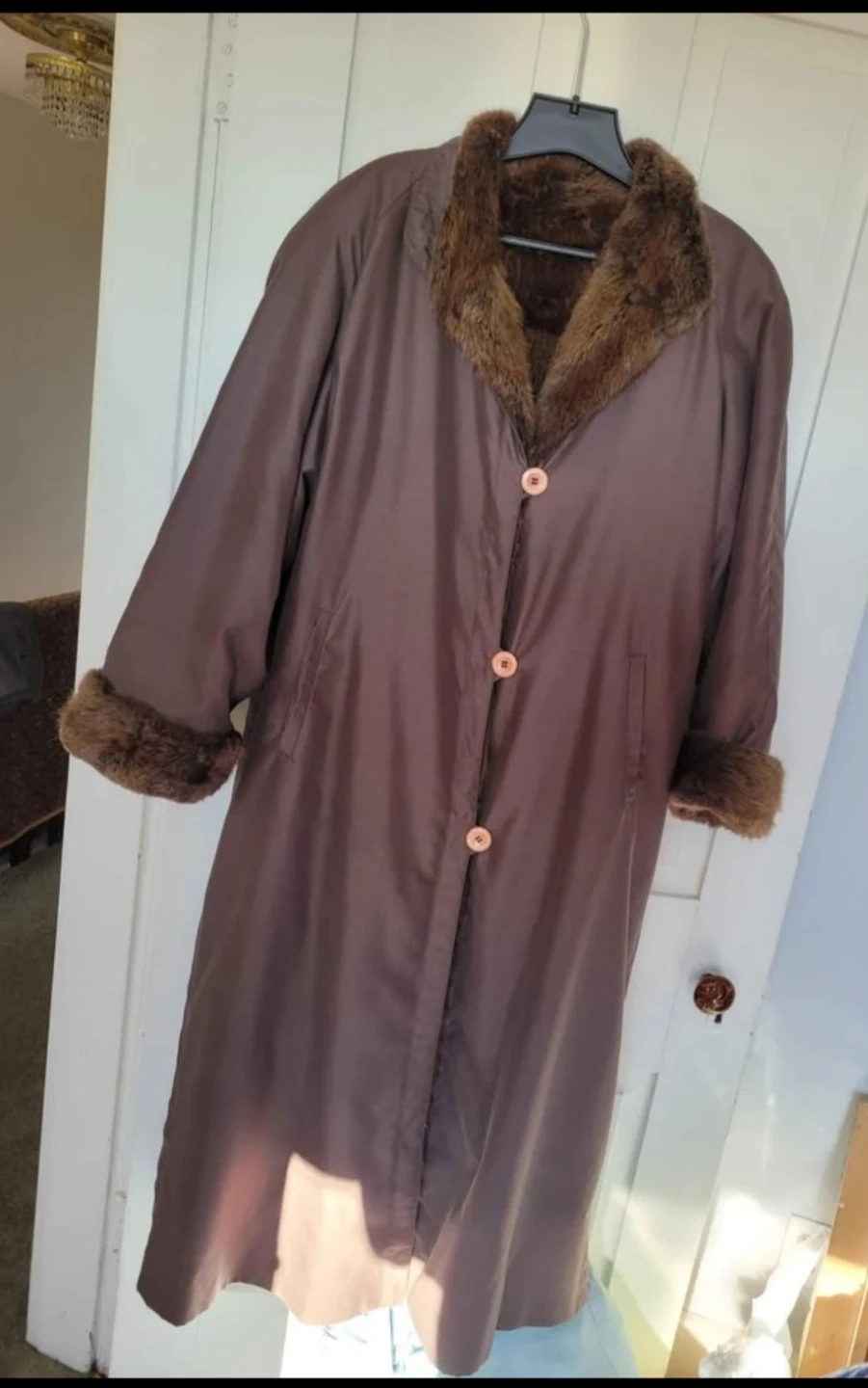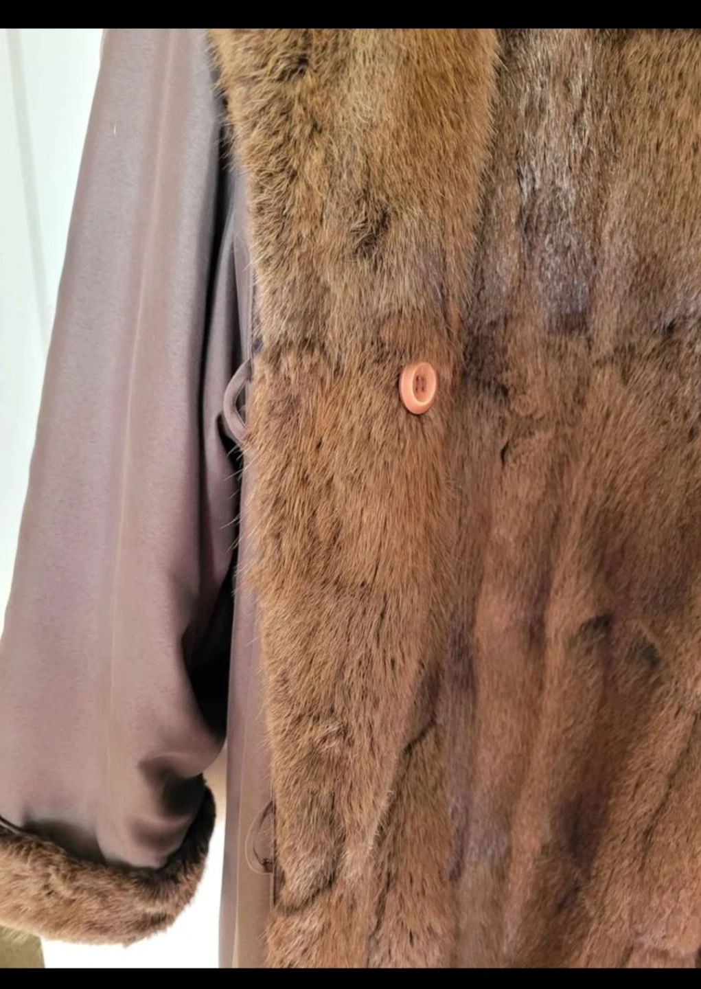 Exquisite design, recycled muskrat liner with as new outer shell. The inner fur is in good shape and the outer layer is like new. It can be removed for cleaning.