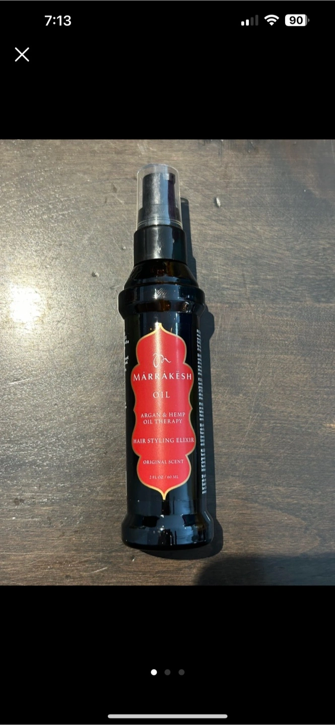 Selling a bottle of Marrakesh Oil Argan & Hemp Oil Therapy Hair Styling Elixir. It's the original scent and comes in a 2 fl oz / 60 ml bottle. Perfect for adding some shine and taming those flyaways!