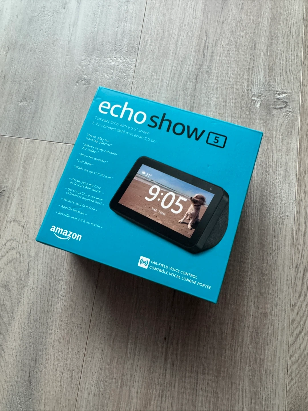 This is an Amazon Echo Show 5 with a 5.5" screen. It's great for hands-free calling and messaging. This smart display also lets you control your smart home devices.