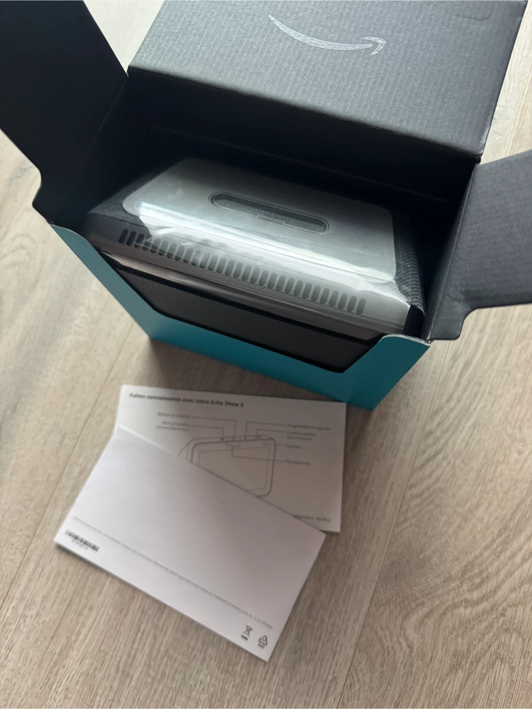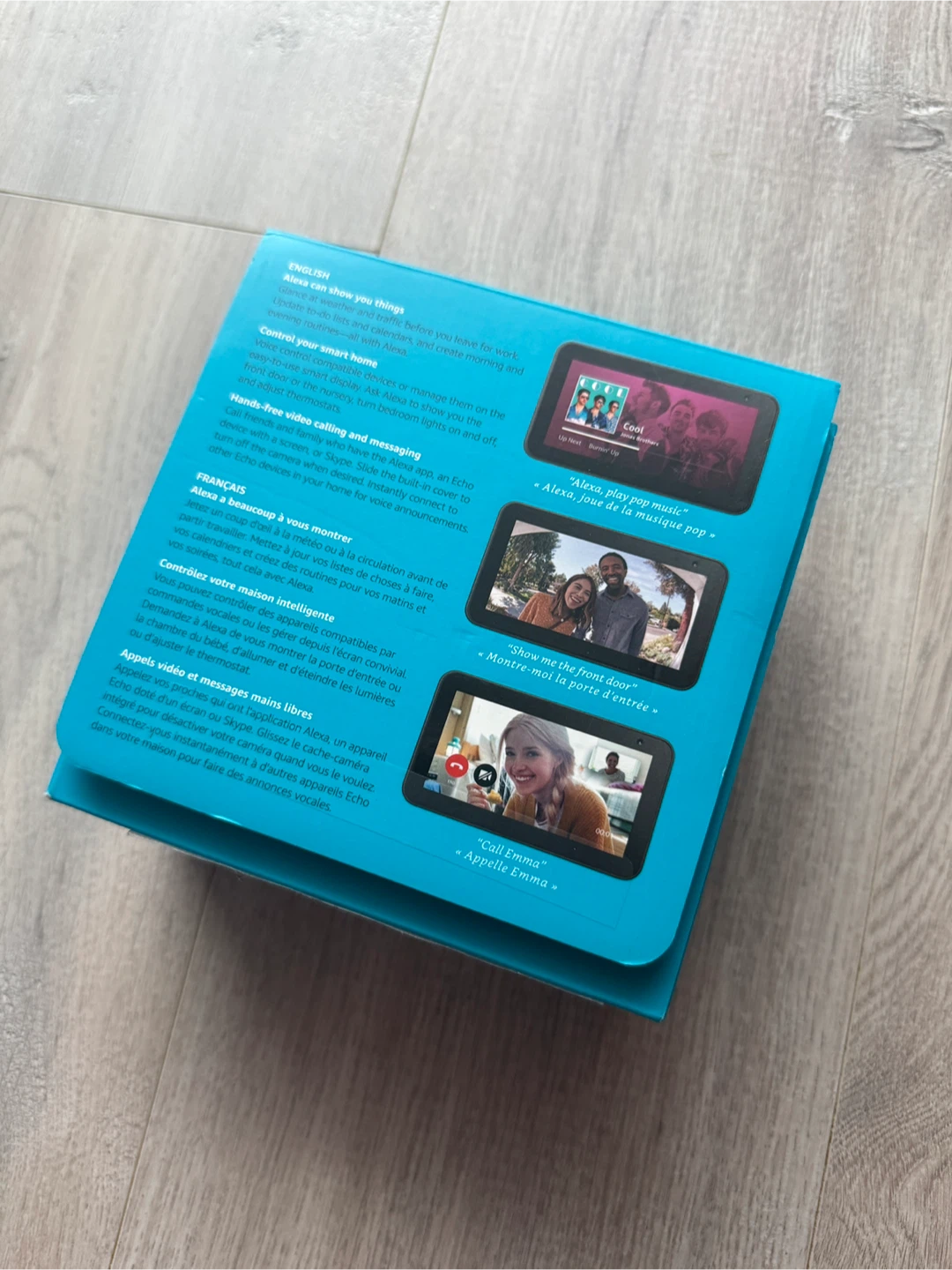 This is an Amazon Echo Show 5 with a 5.5" screen. It's great for hands-free calling and messaging. This smart display also lets you control your smart home devices.