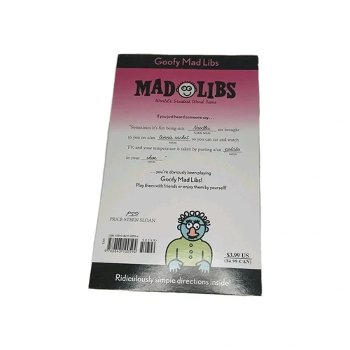 Dive into a world of laughter and creativity with "Goofy Mad Libs: World's Greatest Word Game" by Leonard Stern and Roger Price. This trade paperback edition is perfect for word game enthusiasts and fans of humor. Published by Price Stern Sloan in 2001, it offers a nostalgic trip with its classic English language charm. The book features the iconic Mad Libs format that has entertained generations, challenging players to fill in the blanks with the wackiest words they can muster. Whether you're looking for a fun group activity or a light-hearted read, this game promises to deliver endless entertainment and giggles.