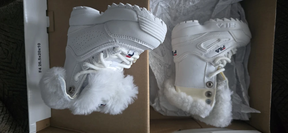 Selling a brand new pair of Fila Disruptor Shearling sneakers for infants. They are a size 4 and come in the original box. Super cute and stylish for your little one!