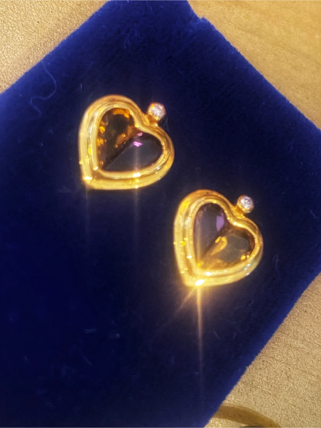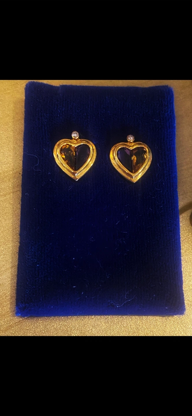 🤎Estate Vintage Gold Heart Smoky Quartz Diamond Stud Earrings