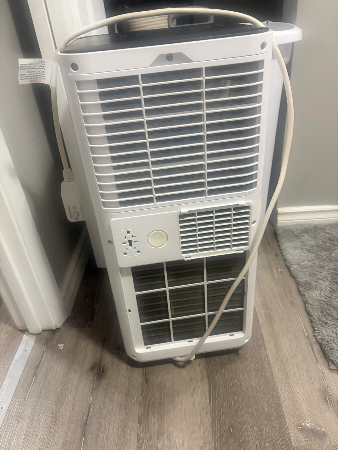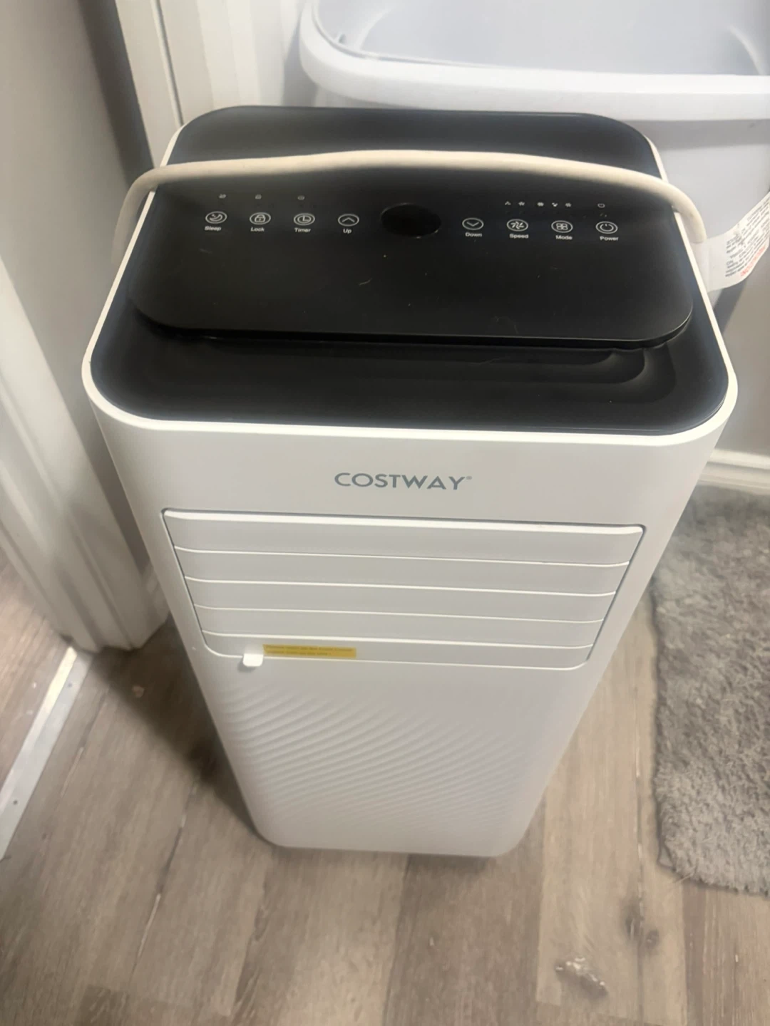 This is a COSTWAY portable air conditioner. It's white and has a sleek design. It comes with adjustable louvres for air direction.