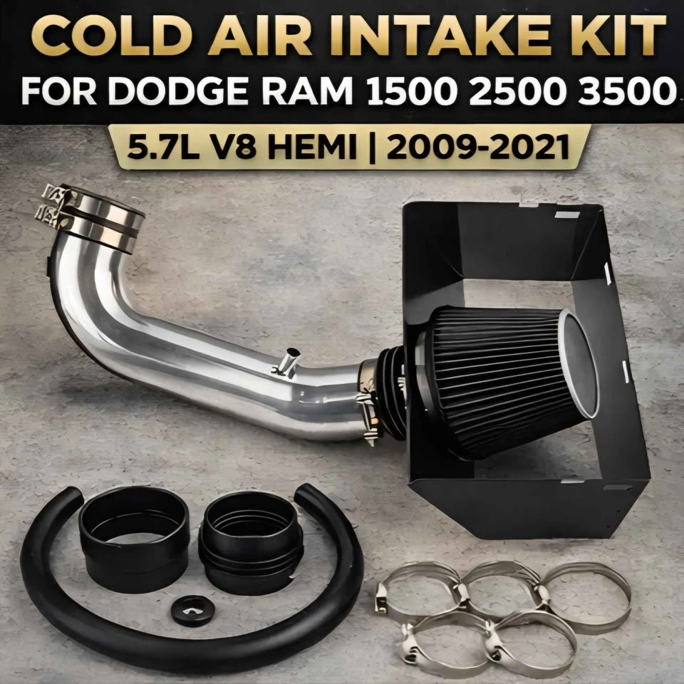 Brand New Cold Air Intake Kit with Heat Shield for Dodge Ram trucks with a 5.7L V8 HEMI engine (2009-2021). Improves airflow, throttle response, and engine sound. This kit allows your engine to pull in cooler, cleaner air, helping improve efficiency and performance. Includes high-flow air filter, aluminum intake pipe, heat shield, couplers, and clamps for installation. Great upgrade for anyone wanting better performance and aggressive intake sound from their HEMI engine. Fits Dodge / Ram trucks with 5.7L V8 HEMI engine: 2009-2010 Ram 1500, 2011-2018 Ram 1500, 2019-2021 Ram 1500 Classic, 2013-2018 Ram 2500, 2013-2018 Ram 3500. Brand New – In the Box. Local pickup in Chicago. Call or Text Justin.