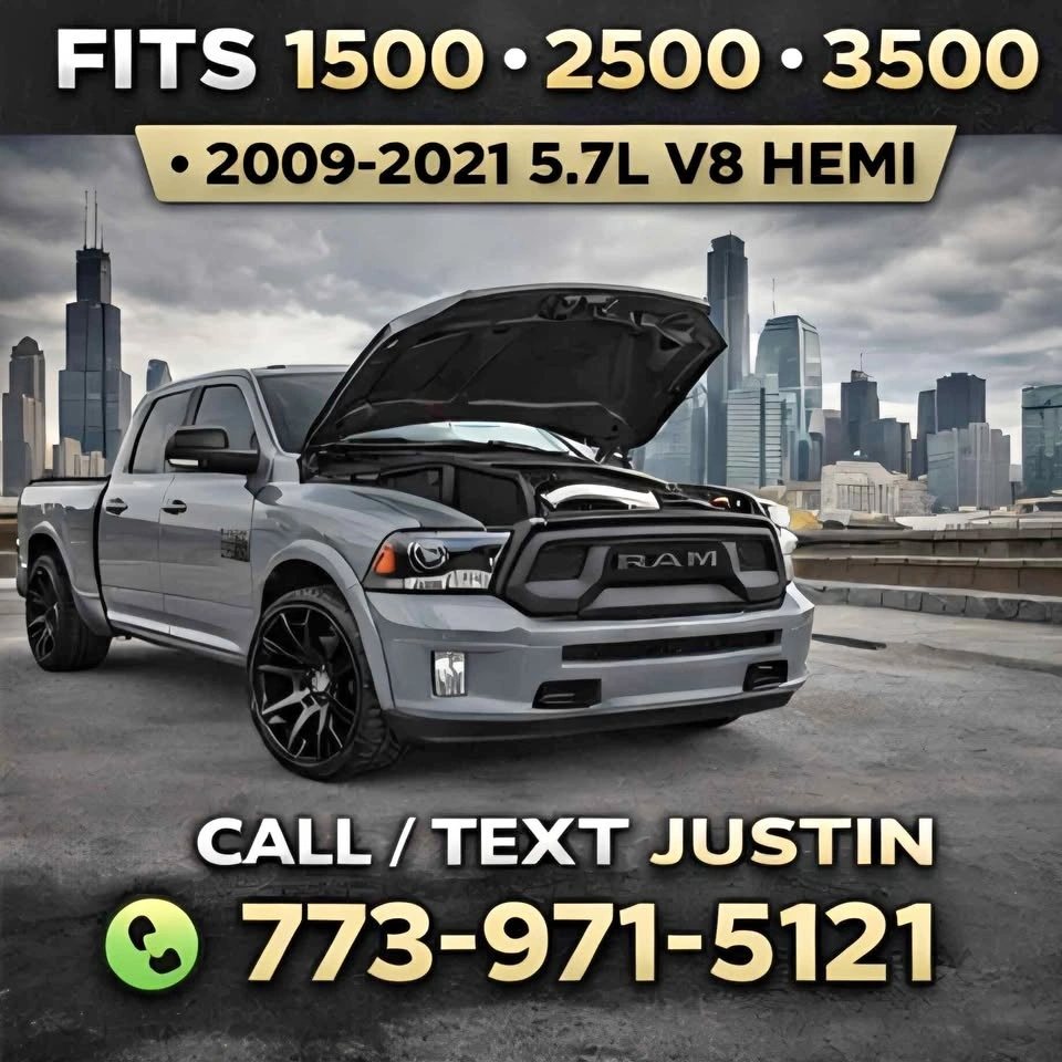 Brand New Cold Air Intake Kit with Heat Shield for Dodge Ram trucks with a 5.7L V8 HEMI engine (2009-2021). Improves airflow, throttle response, and engine sound. This kit allows your engine to pull in cooler, cleaner air, helping improve efficiency and performance. Includes high-flow air filter, aluminum intake pipe, heat shield, couplers, and clamps for installation. Great upgrade for anyone wanting better performance and aggressive intake sound from their HEMI engine. Fits Dodge / Ram trucks with 5.7L V8 HEMI engine: 2009-2010 Ram 1500, 2011-2018 Ram 1500, 2019-2021 Ram 1500 Classic, 2013-2018 Ram 2500, 2013-2018 Ram 3500. Brand New – In the Box. Local pickup in Chicago. Call or Text Justin.