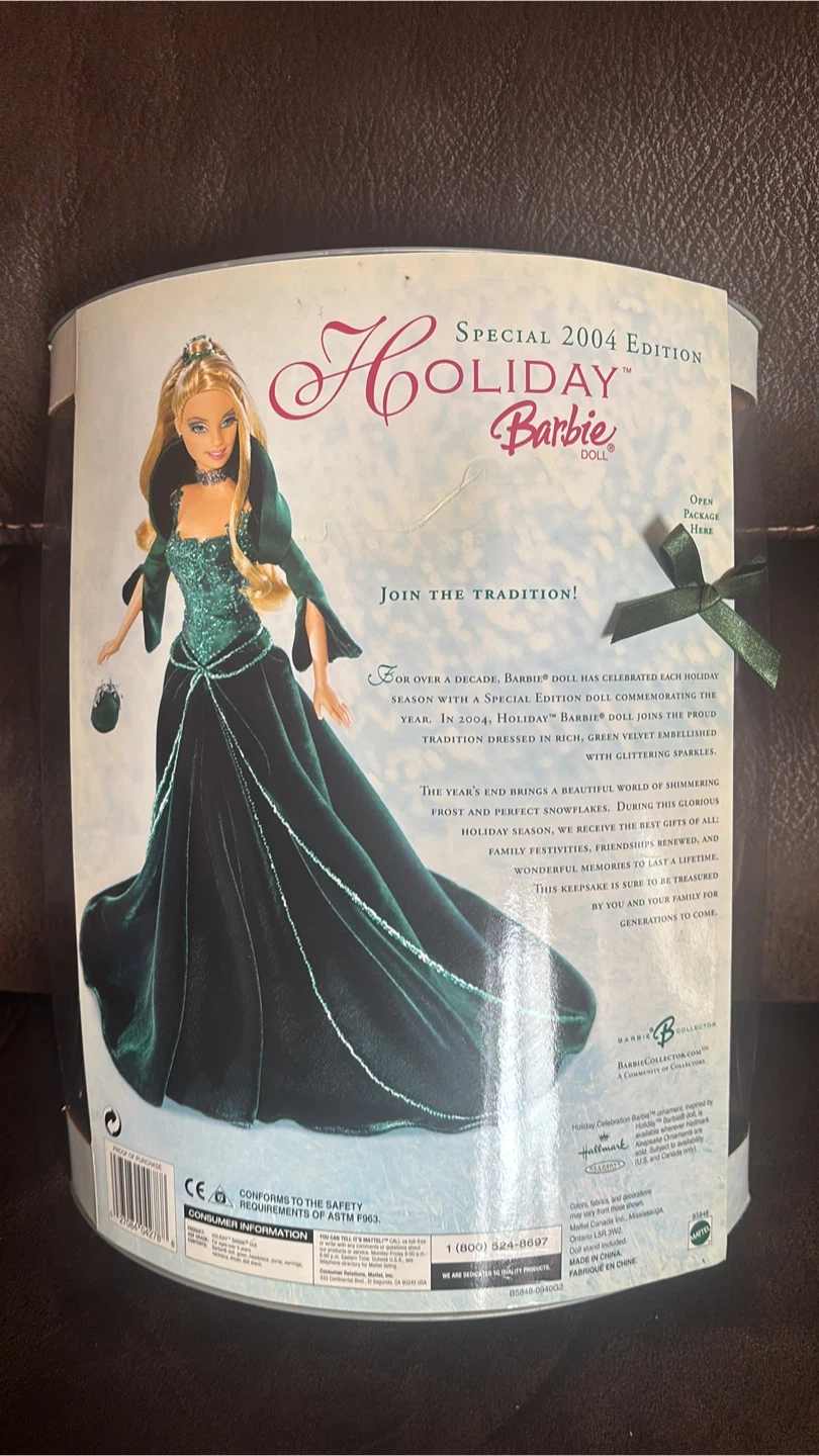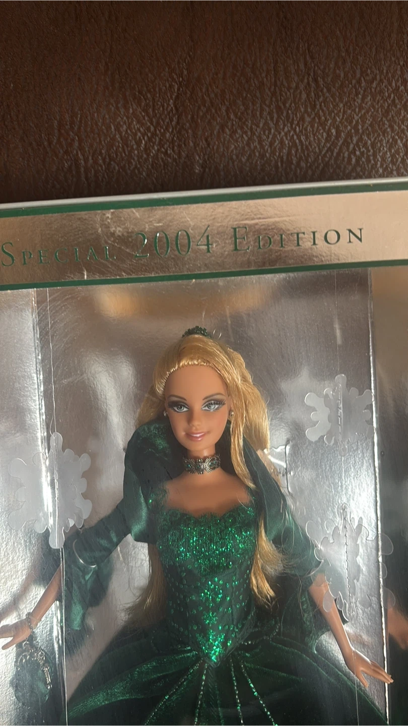 Selling a Special 2004 Edition Holiday Barbie doll! This Barbie doll celebrates each holiday season with a special edition doll. The doll is dressed in rich, green velvet embellished with glittering snowflakes. Wonderful memories to last a lifetime! The box is included