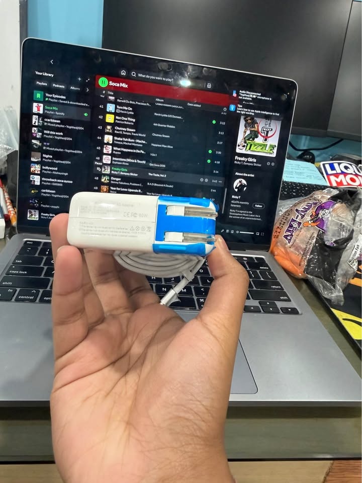 Apple MagSafe MacBook charger in good working condition. Charges properly and has been tested. Cable is in decent shape and neatly wrapped. There is blue tape on the adapter head for reinforcement, but it does not affect performance. Great as a replacement or spare charger. I have two, can do $35 for both.