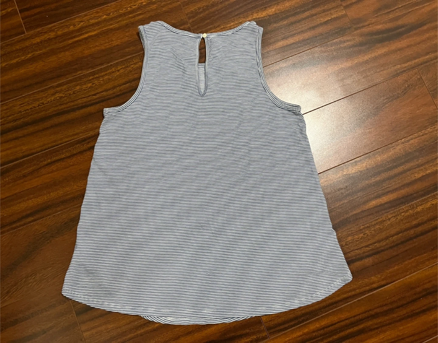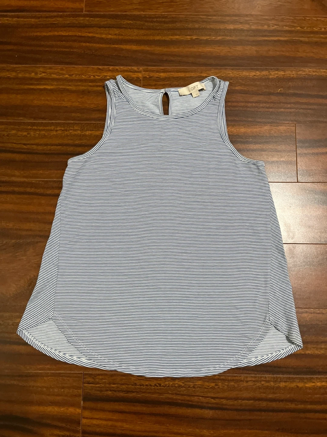 Loft striped tank in excellent condition. Soft modal blend with double‑strap detail and keyhole button back. True to size.