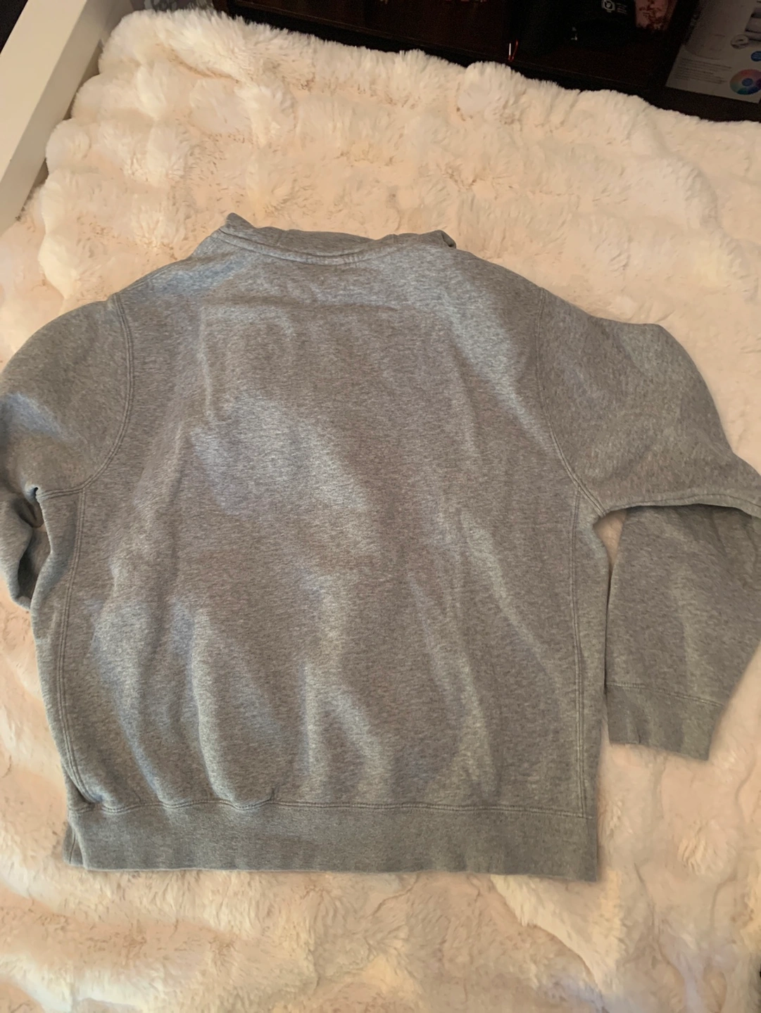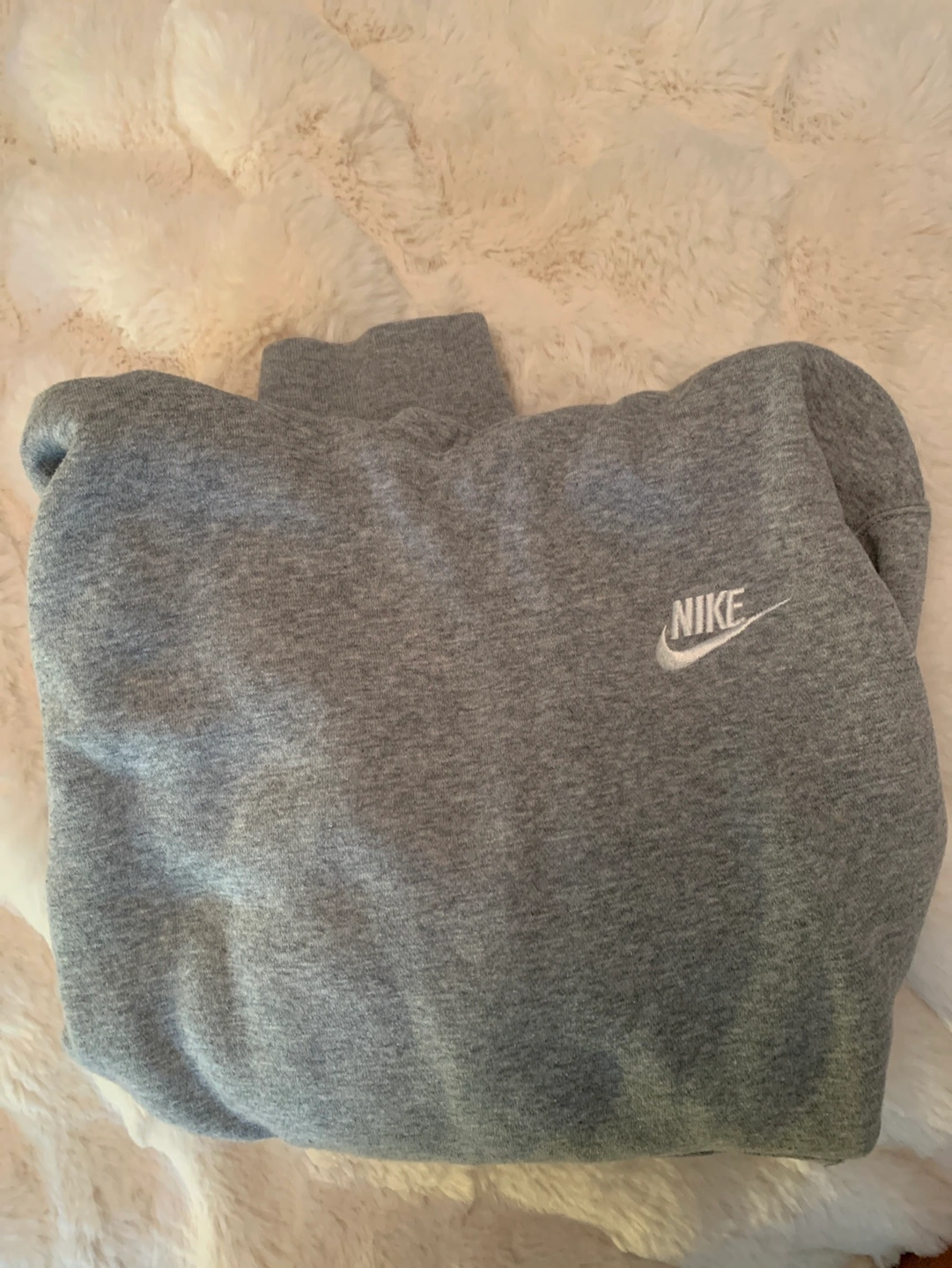 Upgrade your wardrobe with a stylish Nike gray sweater crafted for comfort and durability. It’s perfect for casual wear and lounging around the house.