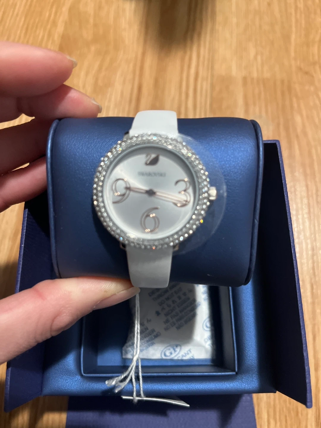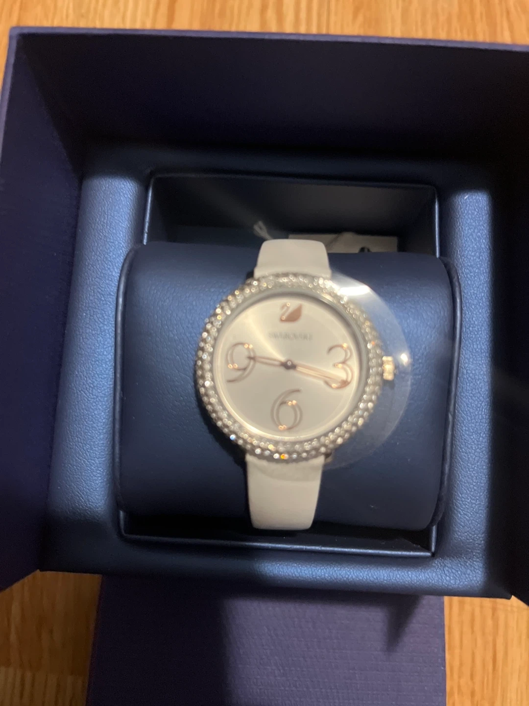 Selling a beautiful Swarovski watch with a white strap! It comes with its original box, perfect as a gift or a treat for yourself.