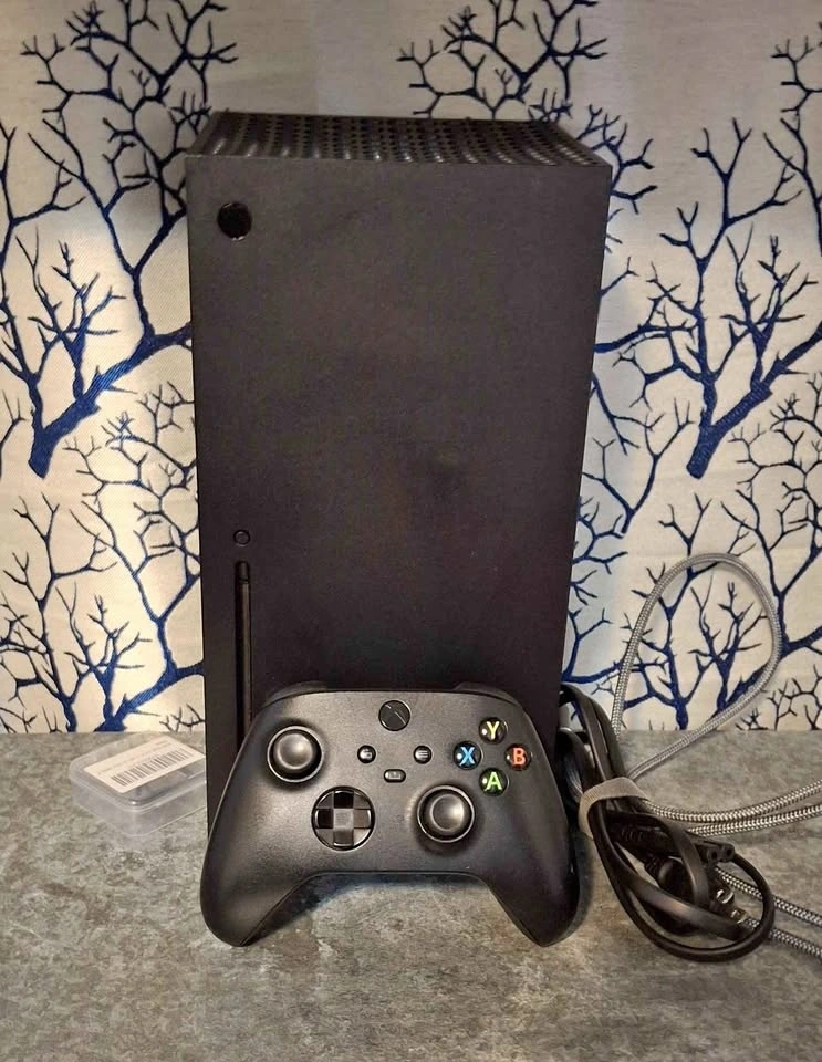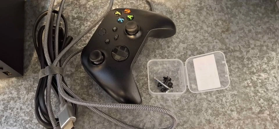 Comes with cord and controller. Everything works amazing, and you can check everything before purchase! However, it needs a new HDMI port. Message for more information.