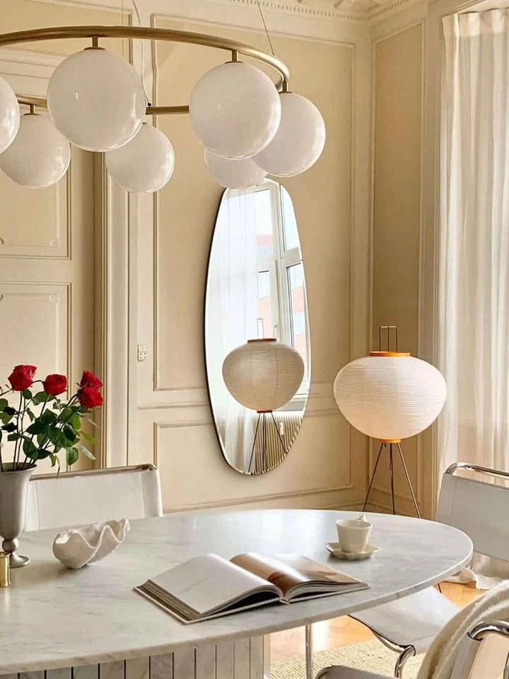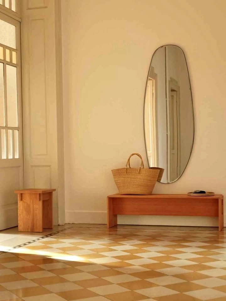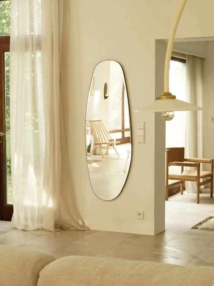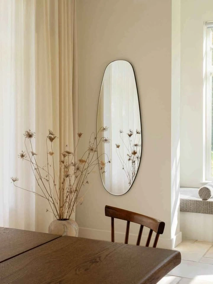 The unique opal-inspired design creates a calming and serene atmosphere. With its oblong shape, the mirror is a fit for any room, from the entrance to the bedroom.