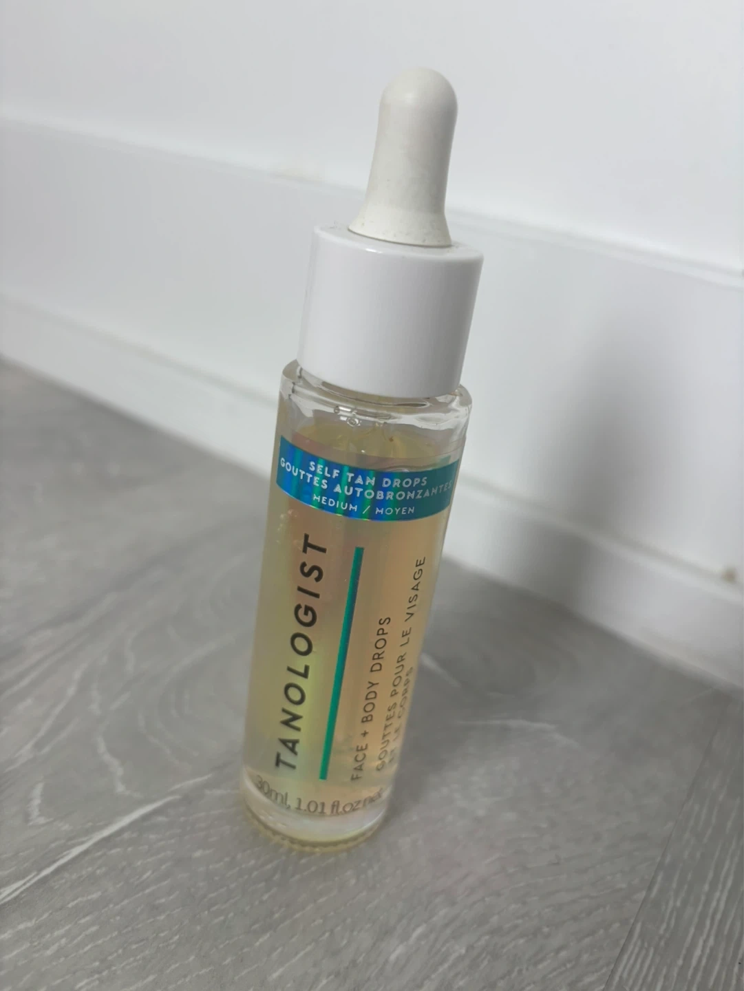Tanologist face and body self-tan drops in medium shade. 30ml bottle, 1.01 fl.oz net. These drops are great for customizing your tan intensity.
