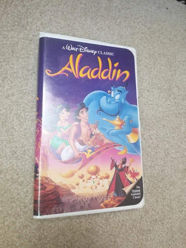 Kid's VHS tape of the original animated classic, Aladdin. The tape is in like-new condition, and the case cover has minor soft plastic crinkles/cracks. It runs for 90 minutes and was made in the USA. Feel free to message if you have any questions!