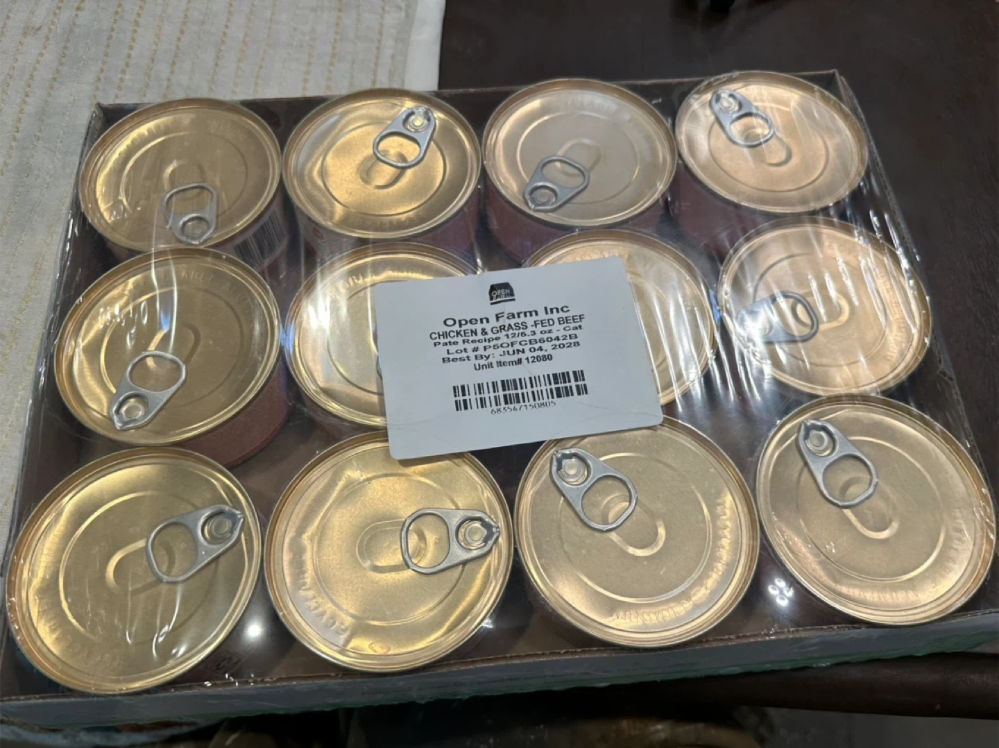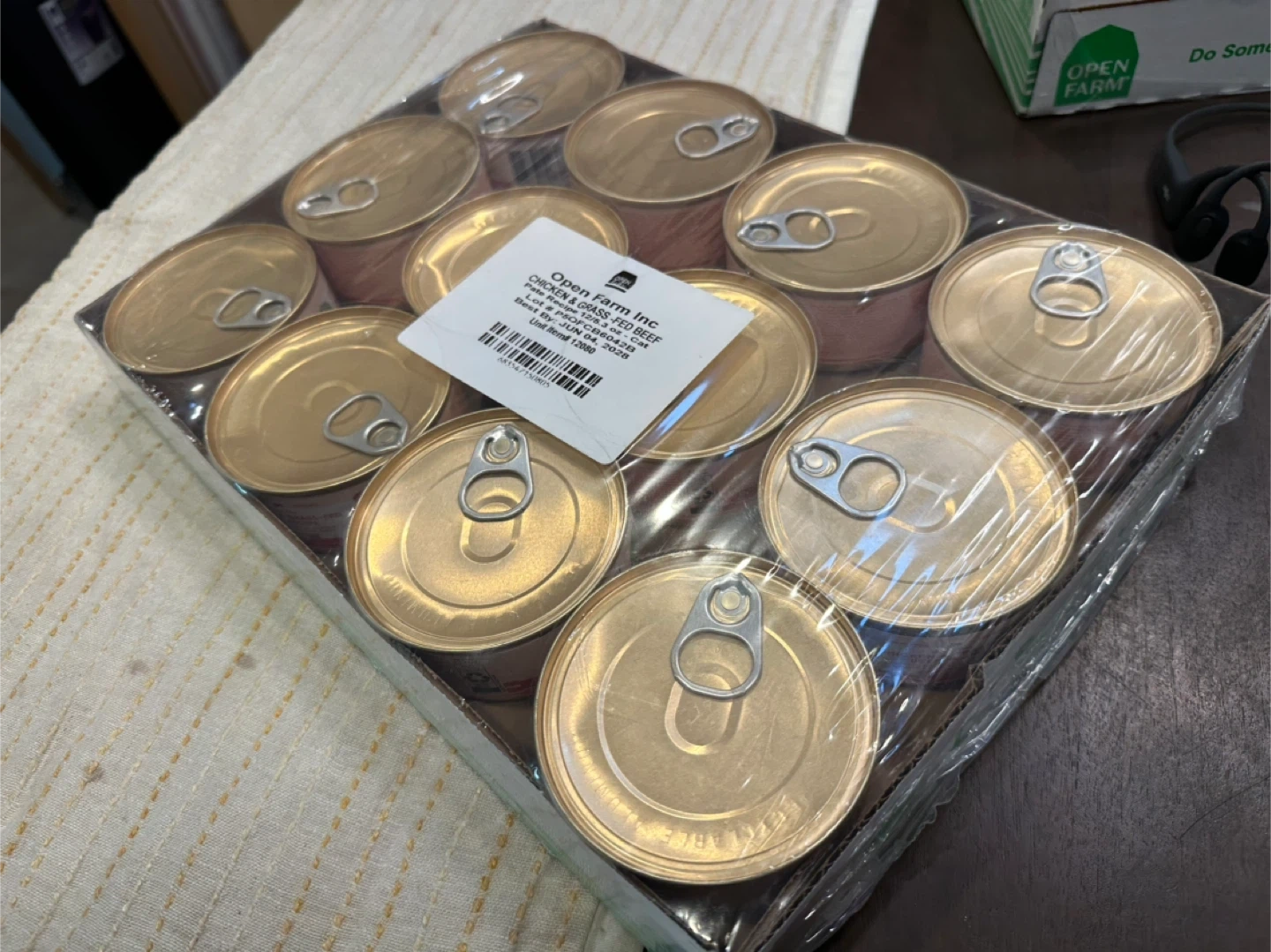 Selling a pack of 12 cans of Open Farm Chicken & Grass-Fed Beef Pate for your furry friend! Each can is 12 oz . The best before date is June 04, 2026, so you'll have plenty of time to use them. Unit item is 12080.