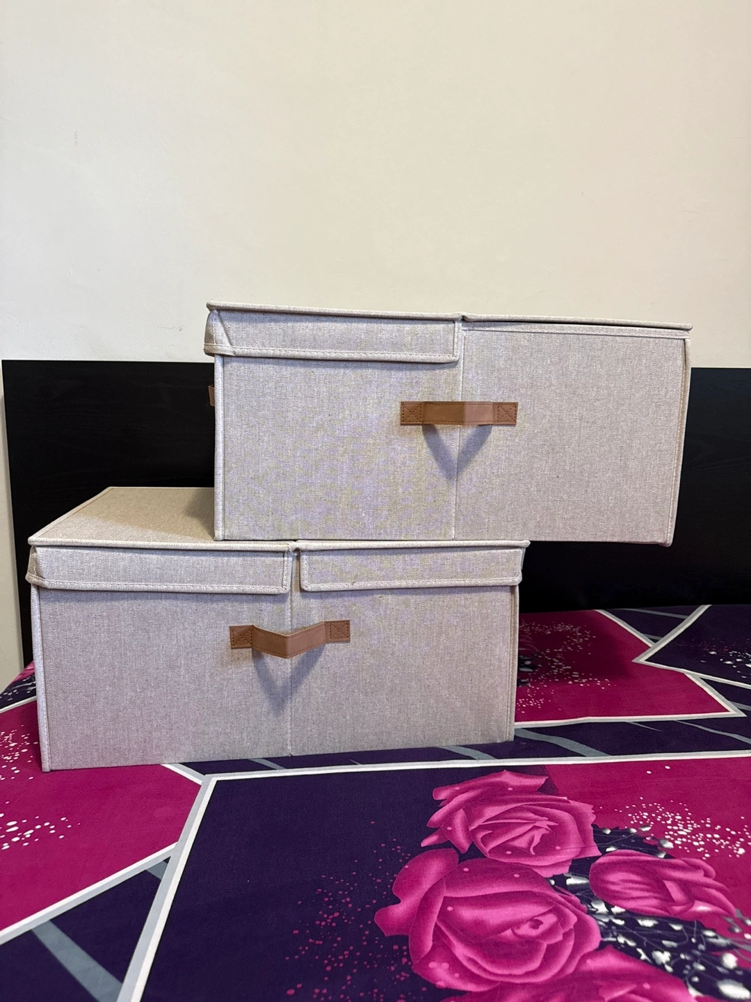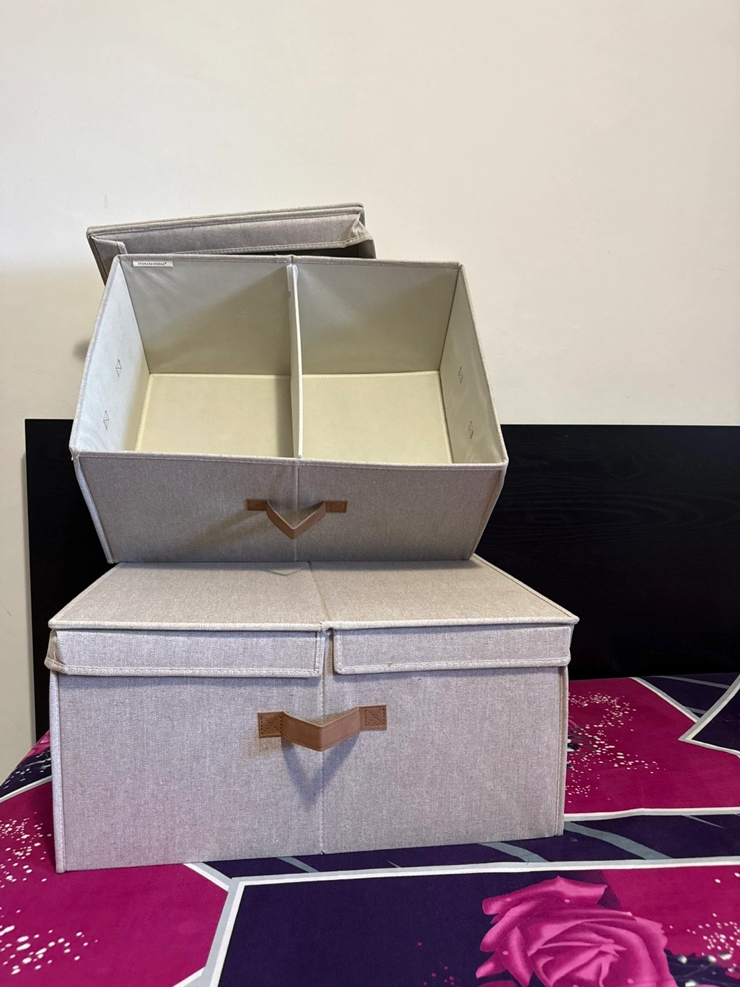 Brand new storage boxes.A large storage box with various illustrated icons. Features label for storage and instructions. Using this item can help you organize your space, creating a more tranquil environment.