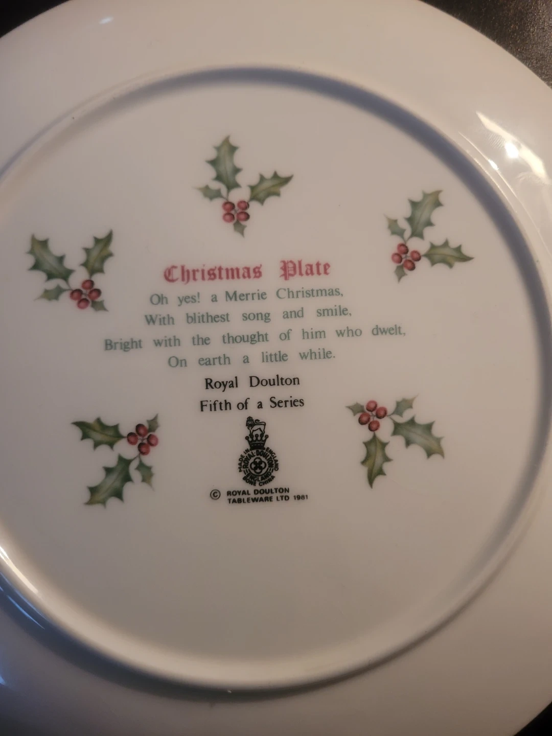 Royal Doulton Christmas Plate - Fifth of a Series - 1981