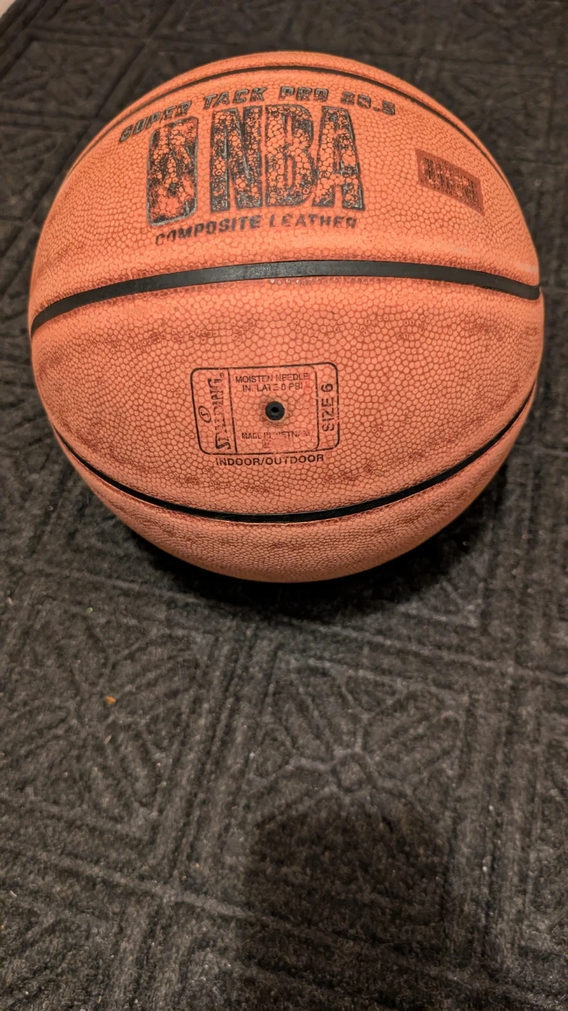 Spalding NBA basketball, size 6. Composite leather construction. Suitable for indoor or outdoor play. Inflates to 6 PSI.
