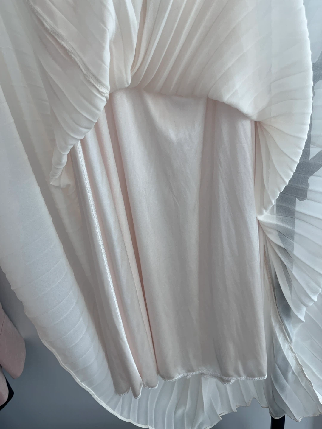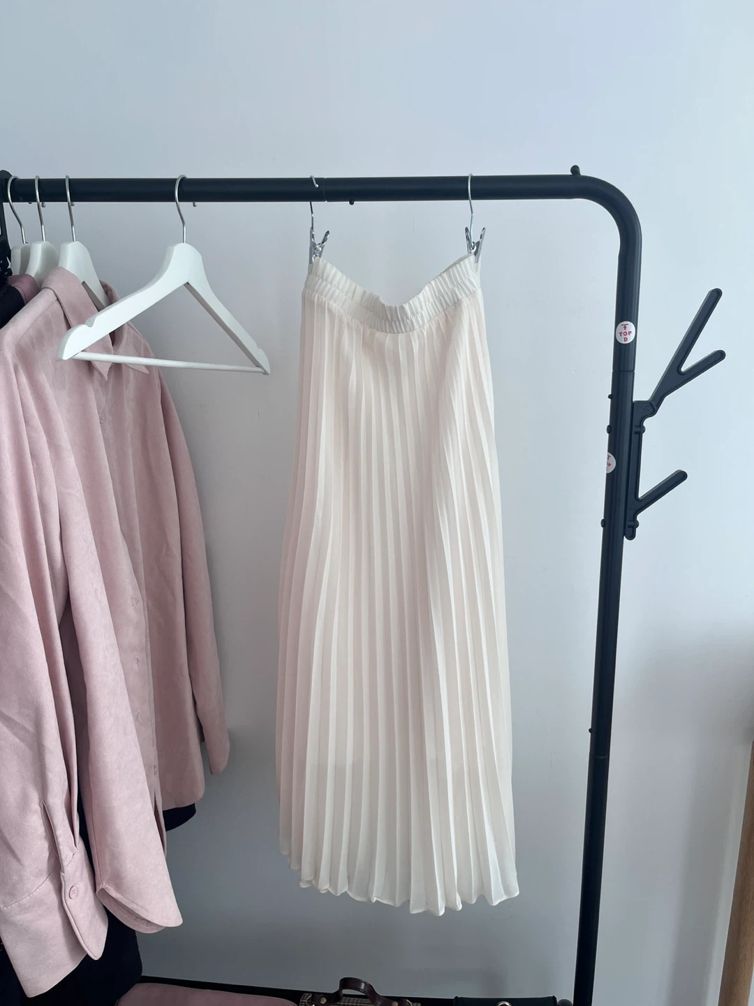 This is a cream-coloured pleated midi skirt. It features an elastic waistband for comfort. The skirt is made from a lightweight, flowing fabric. Purchased in South Korea. (Click other listings- Moving country sale - every clothes and handbags under $10)