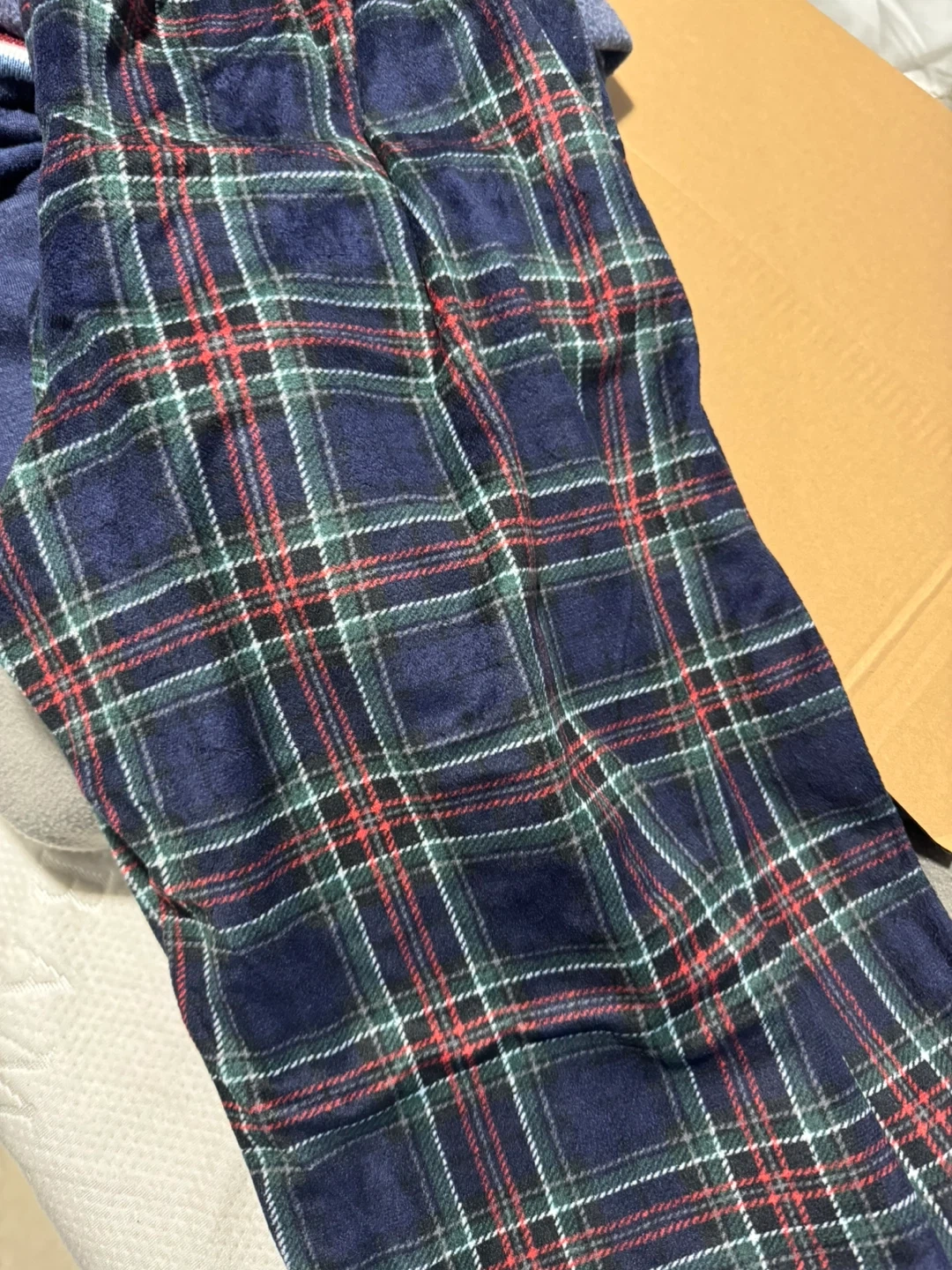 Men's flannel pajama pants in blue plaid. Made of 100% polyester.