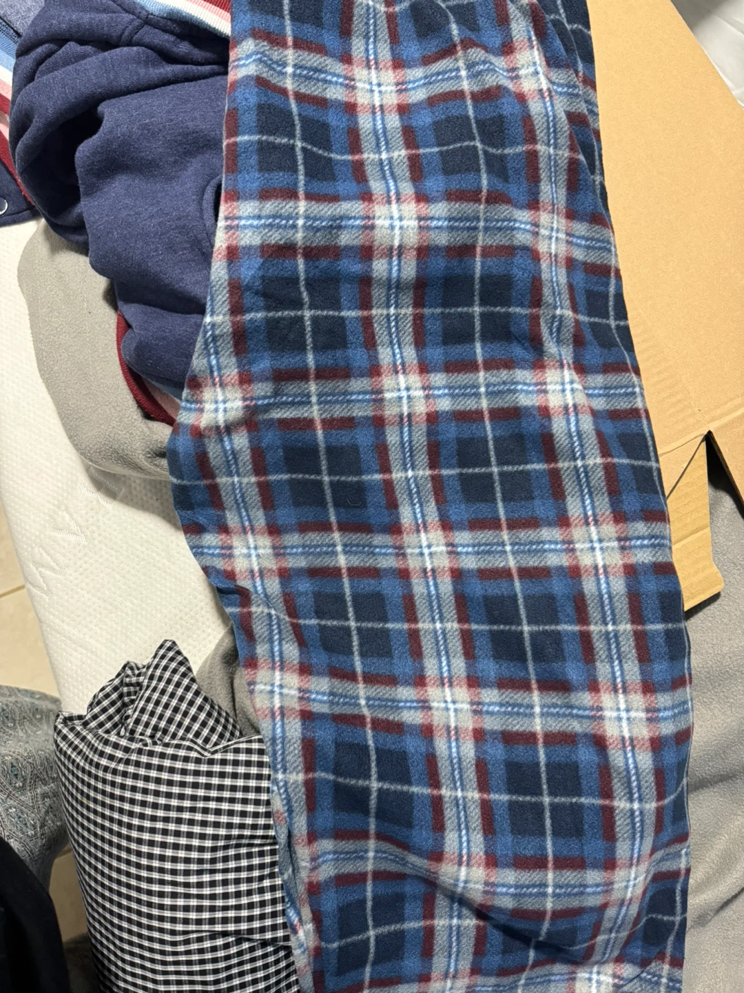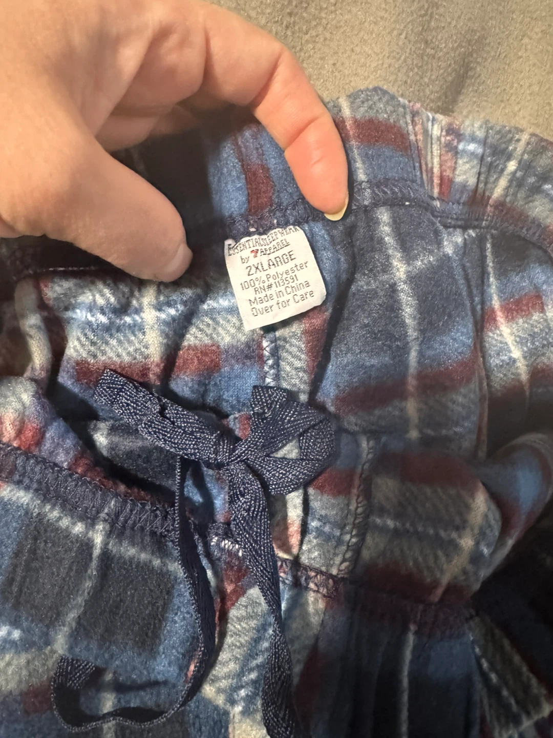 Men's flannel pajama pants in blue plaid. Made of 100% polyester.