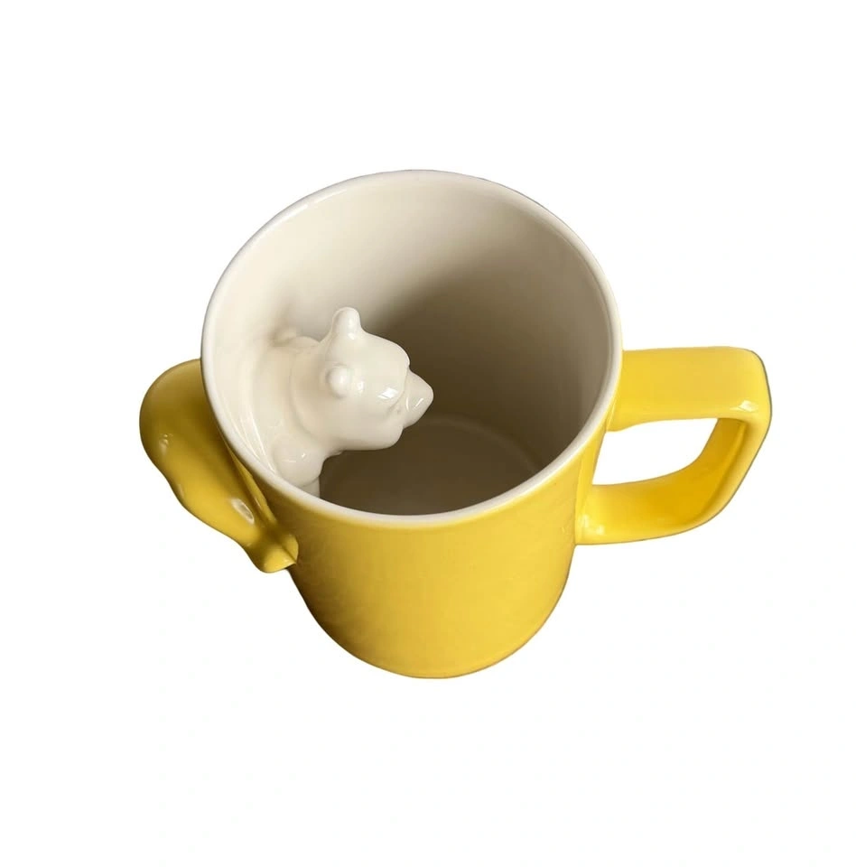 Authentic Disney Store Winnie the Pooh mug with a hidden surprise inside. Official Disney Store item. Features a hidden 3D Winnie the Pooh inside. Bright yellow ceramic with sculpted detail. In excellent condition, with no chips or cracks. Perfect for Disney lovers and collectors, as a gift, or for cozy kitchens. Pick up in Keswick or Newmarket.