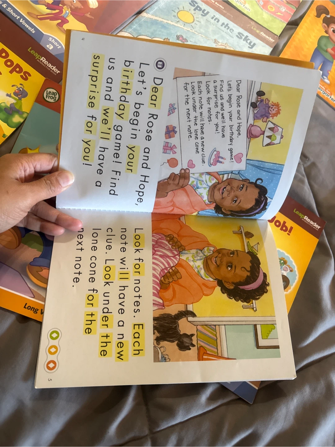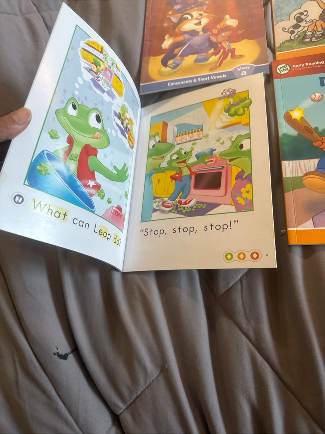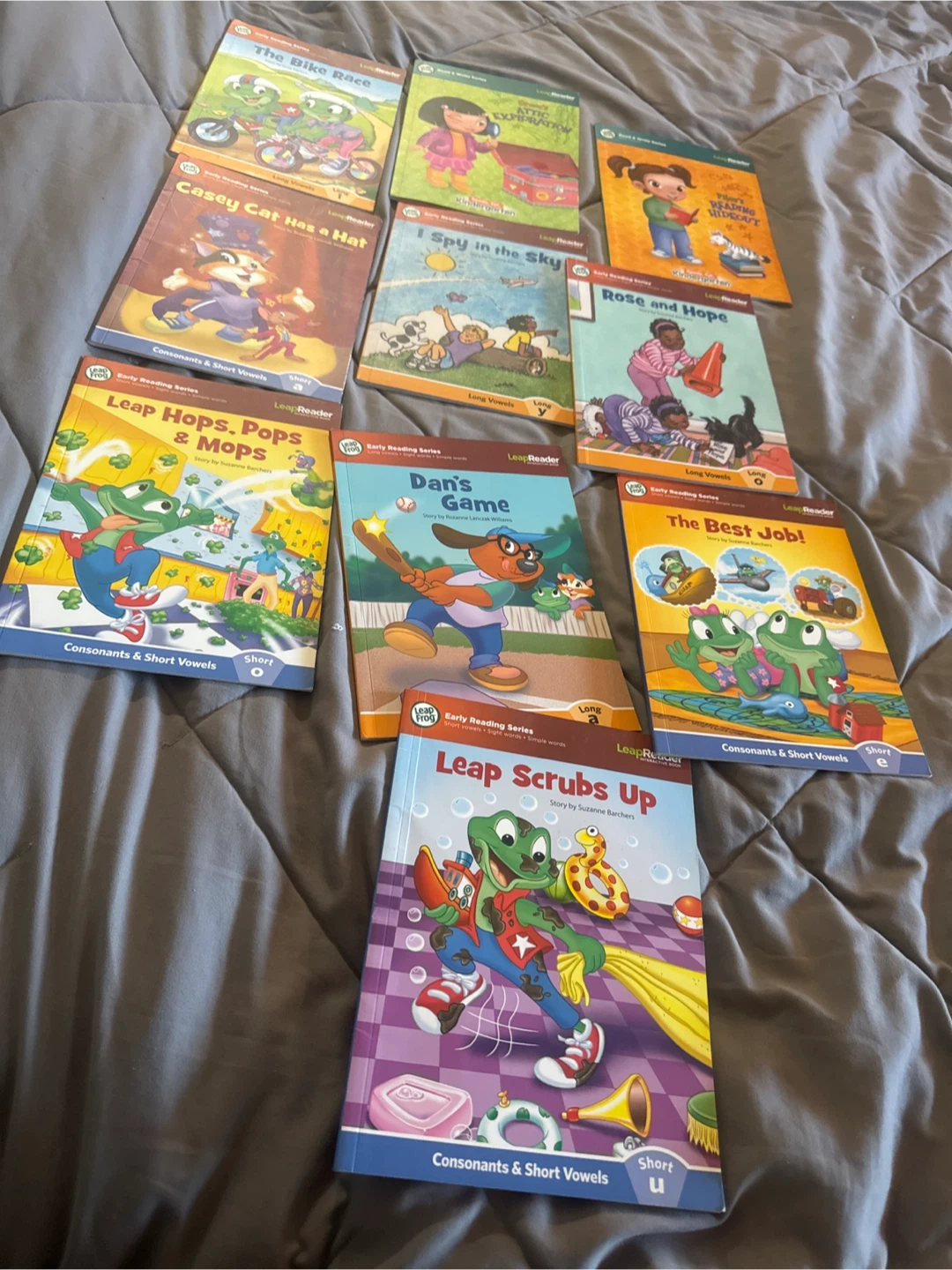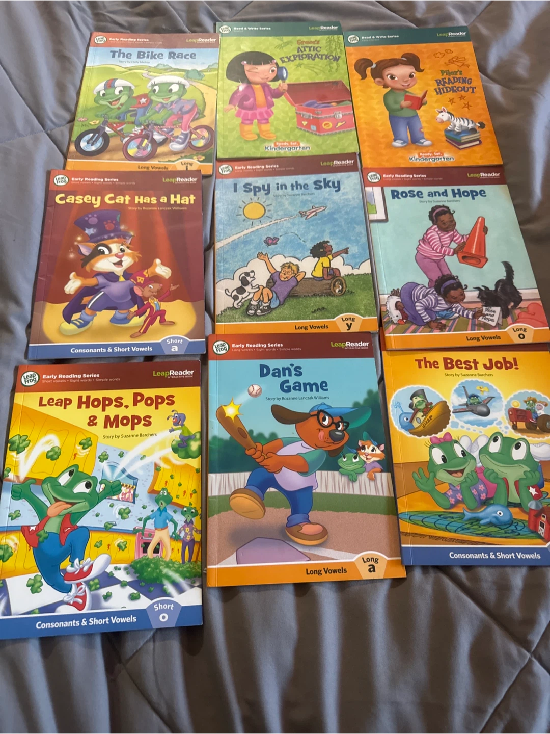 Selling a set of LeapFrog Early Reading Series books! These are great for helping kids learn to read with sight words and simple stories. Includes titles like 'Casey Cat Has a Hat', 'I Spy in the Sky', 'Rose and Hope', and more! Perfect for young learners