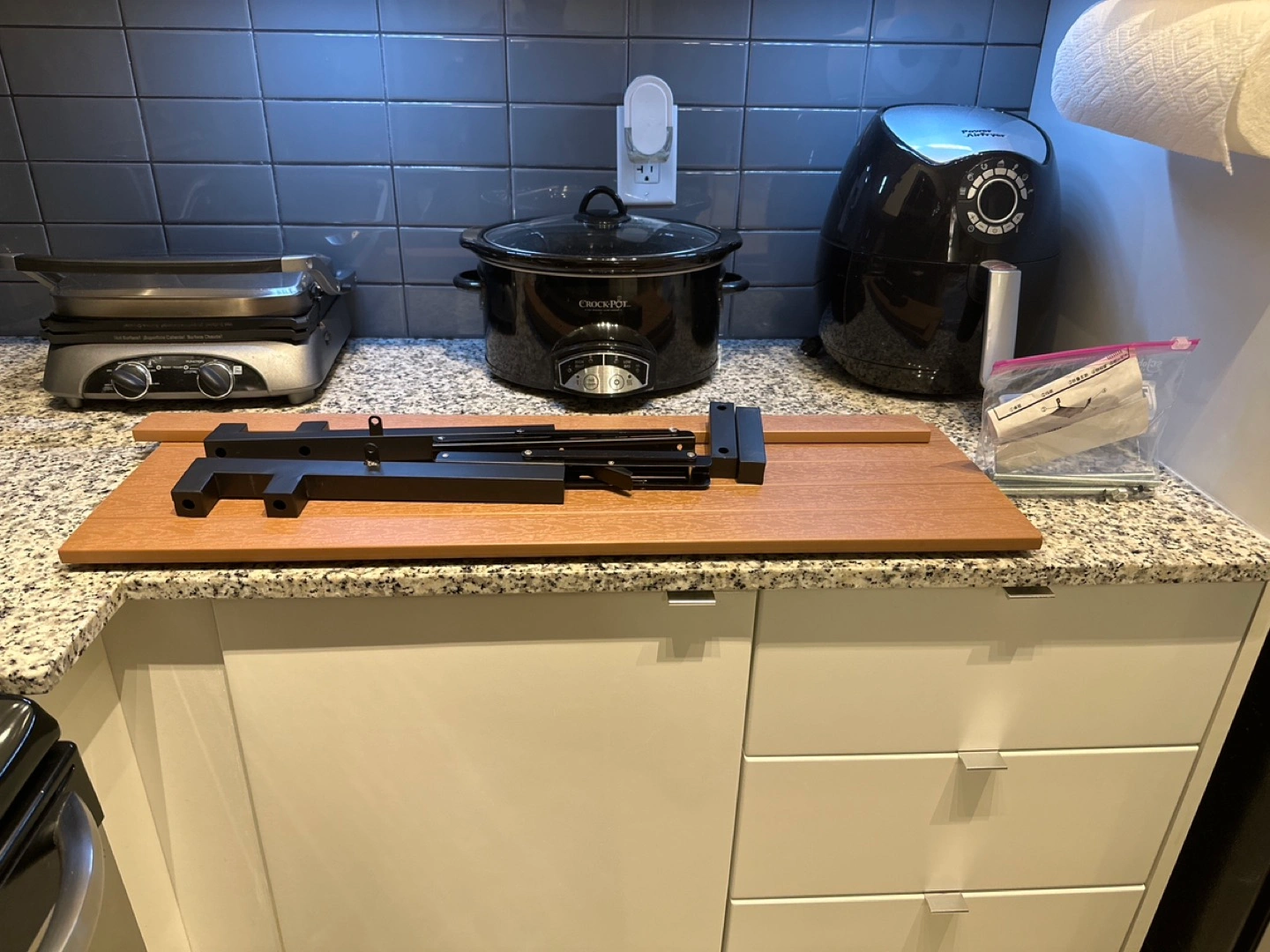 Never used, balcony rail table. Selling because I received it, but too small for my balcony.
