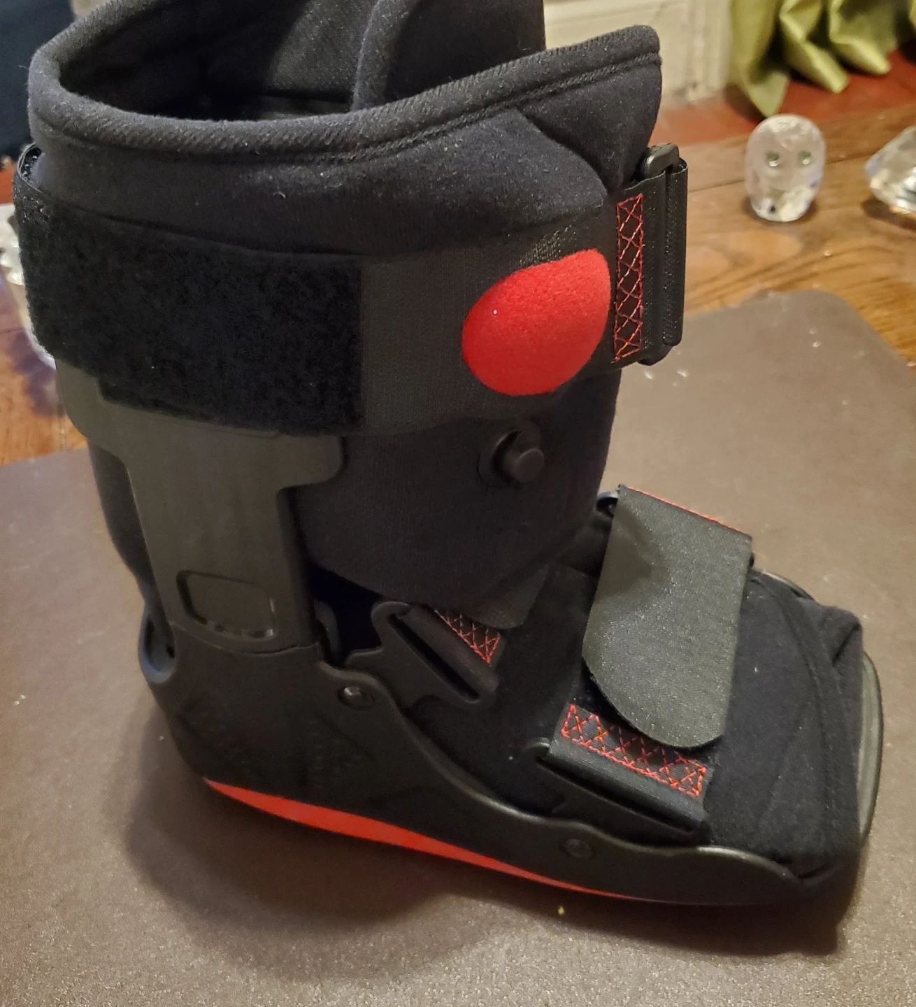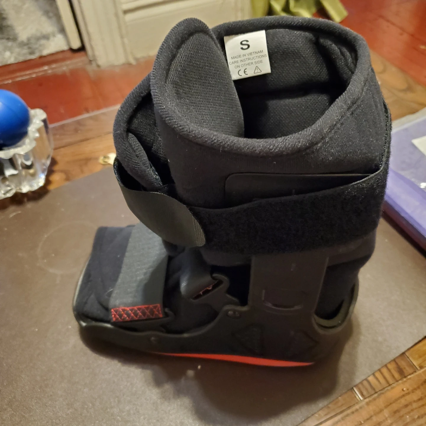 This is a black walking boot to secure your injured foot. It's a size small. Its a pneumatic, lightweight walking boot designed for moderate-to-severe sprains, stable fractures, and post-operative immobilization. Almost new .. only wore it one day.