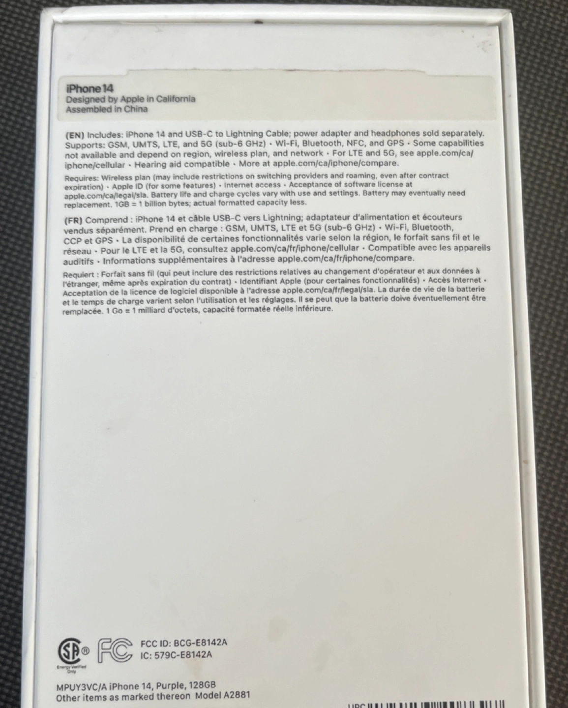 Buy & SellI Phone 14 128gb - New in box -I Phone 14 128gb - New in box -$900As described brand new iPhone 14 128gb purple phone in box. I will remove the ad when sold😉ConditionNewBrandAppleWHERE TO MEETChurch Street & Isabella StreetView MapSELLERverifiedChrisChurch and Wellesley1104 reviews2 chats·1 favorites·52 viewsSEND CHAT TO SELLERHi Chris! I’m interested in your listing.Hi Chris! I’m interested in your listing.Get the Karrot app to chatSign In to chat