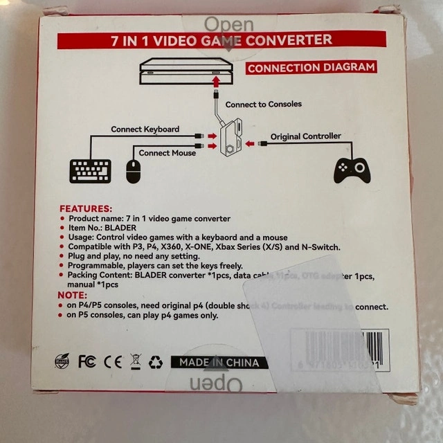 New open-box AIMZENIX 7-in-1 video game converter, allowing you to play console games using a keyboard and mouse. Opened only to verify contents — never used. Ideal for FPS and precision gaming on console. KEY FEATURES: ✅ Use keyboard & mouse on console ✅ Plug-and-play (no software required) ✅ Programmable key mapping ✅ Compact, low-latency design ✅ Supports original controller passthrough COMPATIBILITY: ✅ PS3 / PS4 / PS5 ✅ Xbox 360 / Xbox One / Xbox Series X|S ✅ Nintendo Switch Selling for $30 firm. Pickup location in Etobicoke near Gardiner Expy (by Park Lawn)