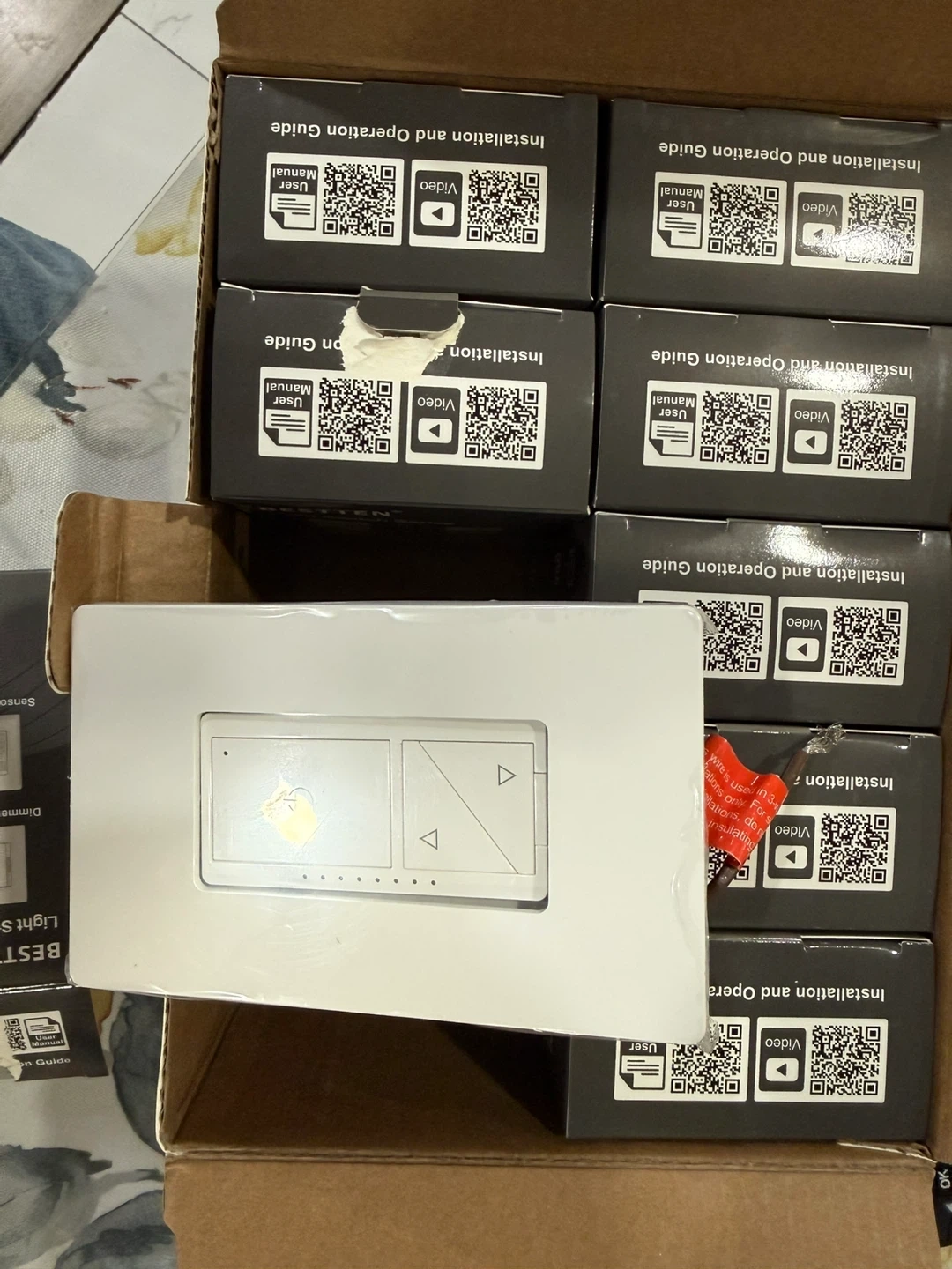 This BESTTEN digital dimmer switch offers precise control for your lights. It's a 3-button design with an on/off button and up/down dimming buttons. Screwless wallplates are included (8 SETS)