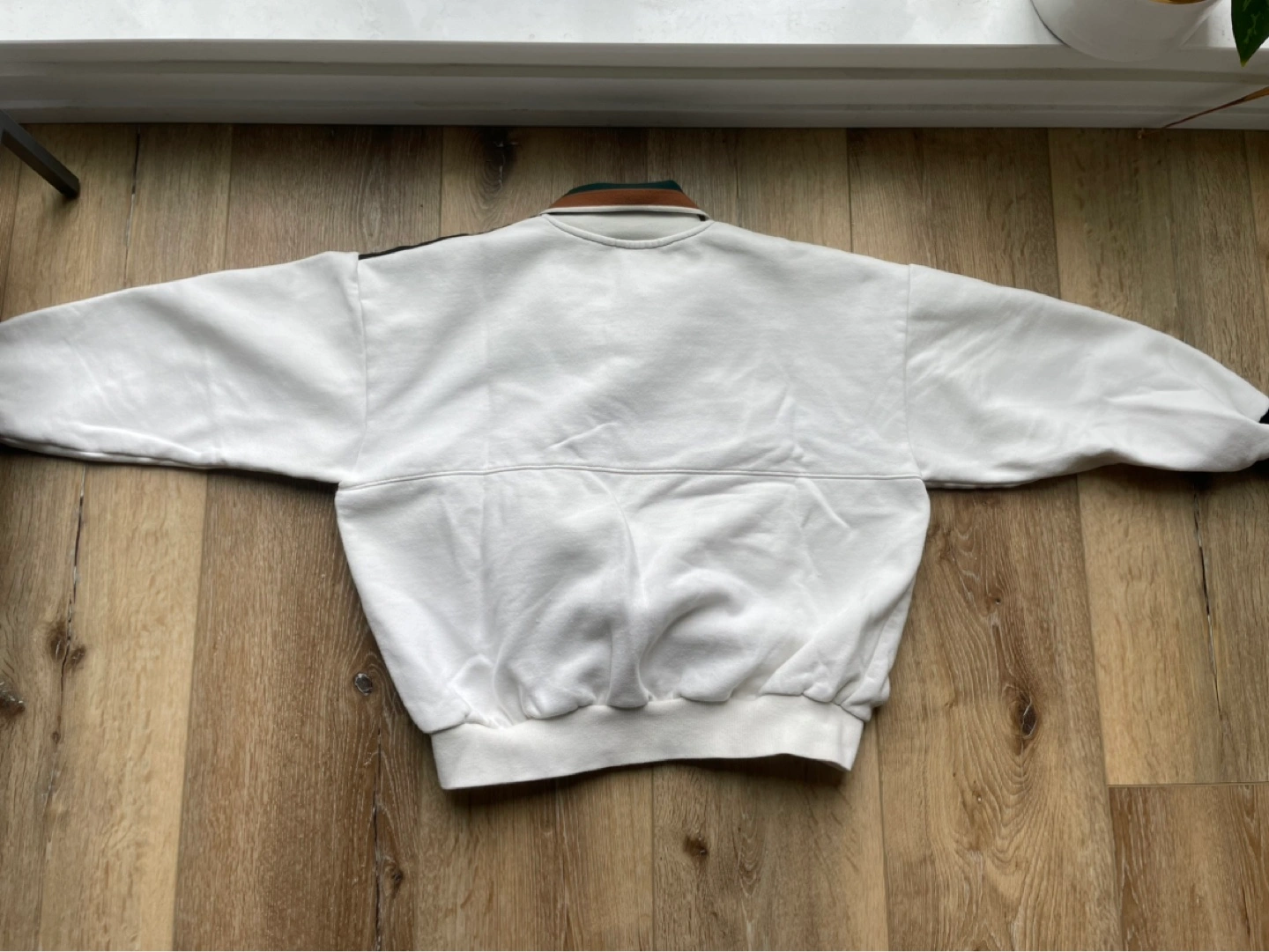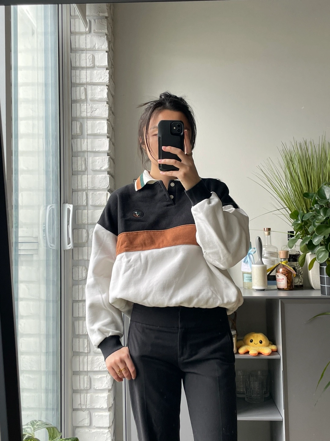 Colour block design. Features a polo collar and long sleeves. Relaxed fit.