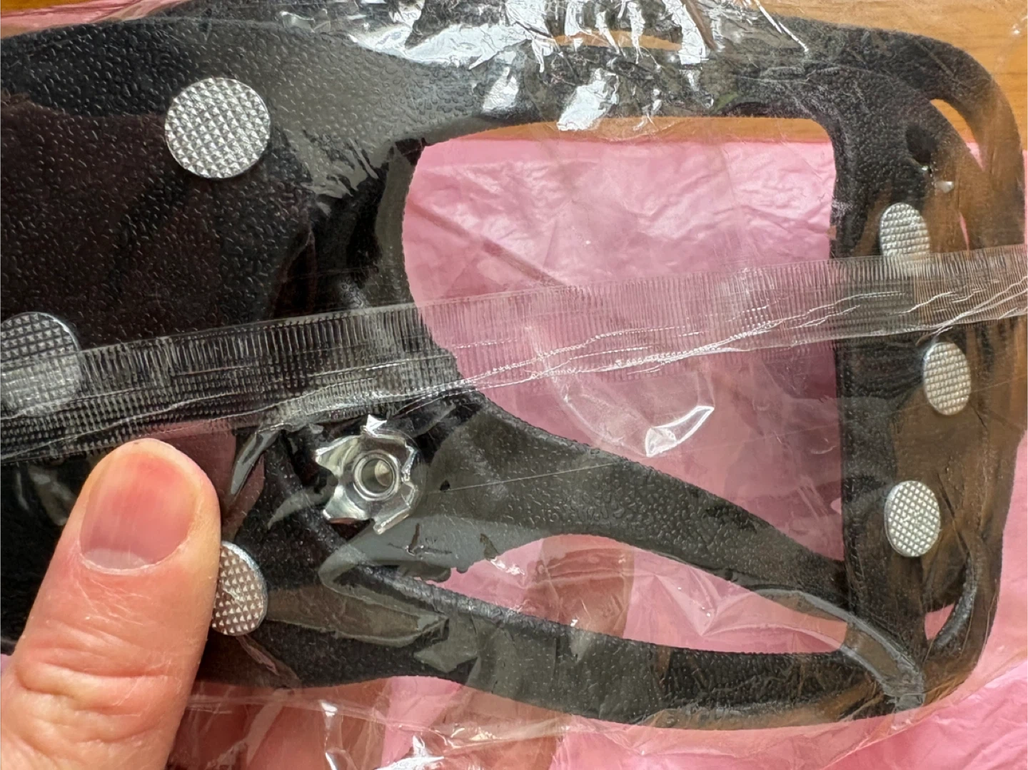 These black ice cleats attach to your footwear for better traction on slippery surfaces. They feature multiple metal spikes for grip. Easily slips on over boots or shoes.