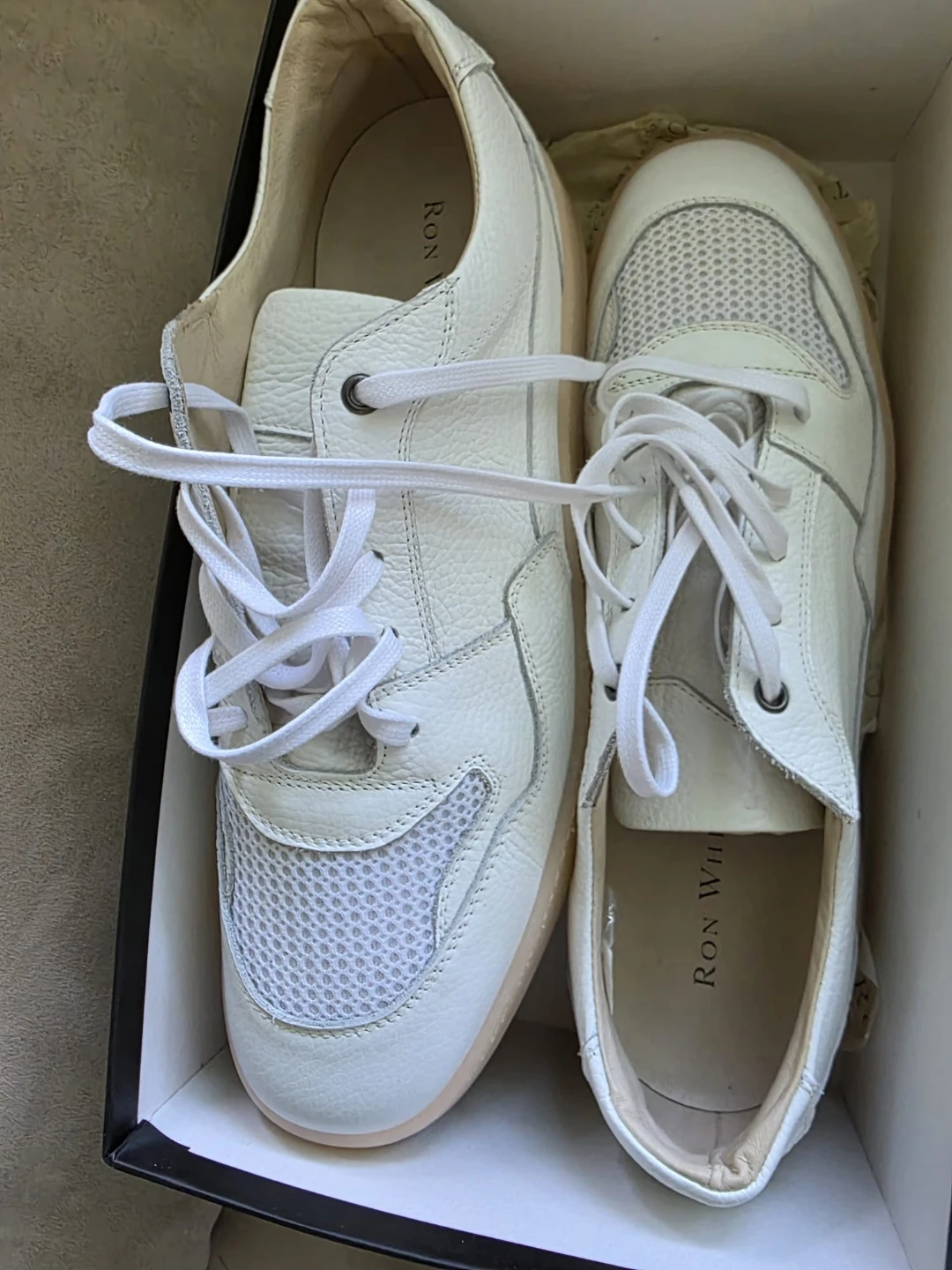 1 / 11 / 1Buy & SellRon White White Leather SneakersRon White White Leather Sneakers$52Ron White leather sneakers in white. Features a mesh toe box and lace-up closure. These are stylish and comfortable for everyday wear.Size45BrandRon white WHERE TO MEETScarborough OntarioView MapSELLERverified693Glenshephard Park661 review0 chats·0 favorites·37 viewsSEND CHAT TO SELLERHi 693! I’m interested in your listing.Hi 693! I’m interested in your listing.Get the Karrot app to chatSign In to chat