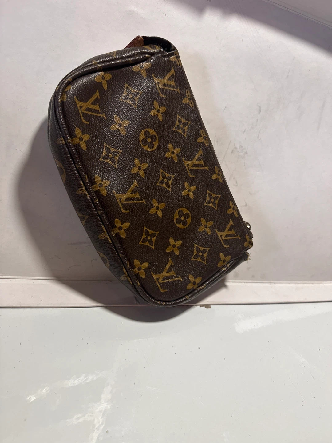 Selling an unverified vintage Louis Vuitton Mini Pochette Accessoires in the classic monogram canvas. Both ripper work as should. Sorry no shoulder strap at this time. No Guarantees, but I h may find one and will add it to it for no charge if it’s not sold by the time of locating one