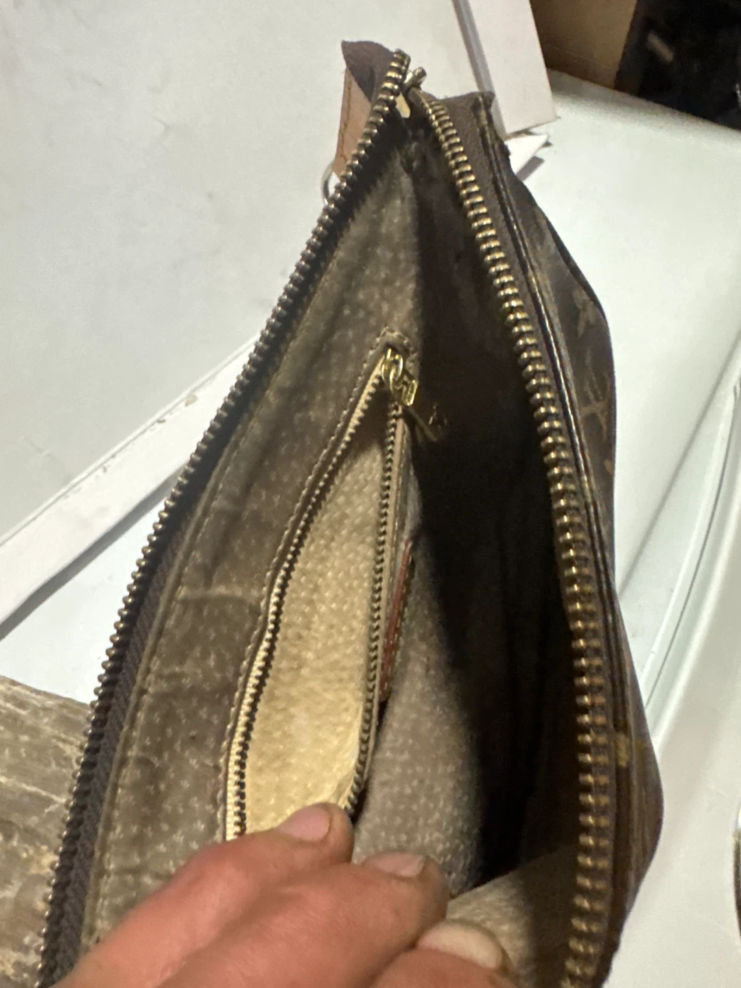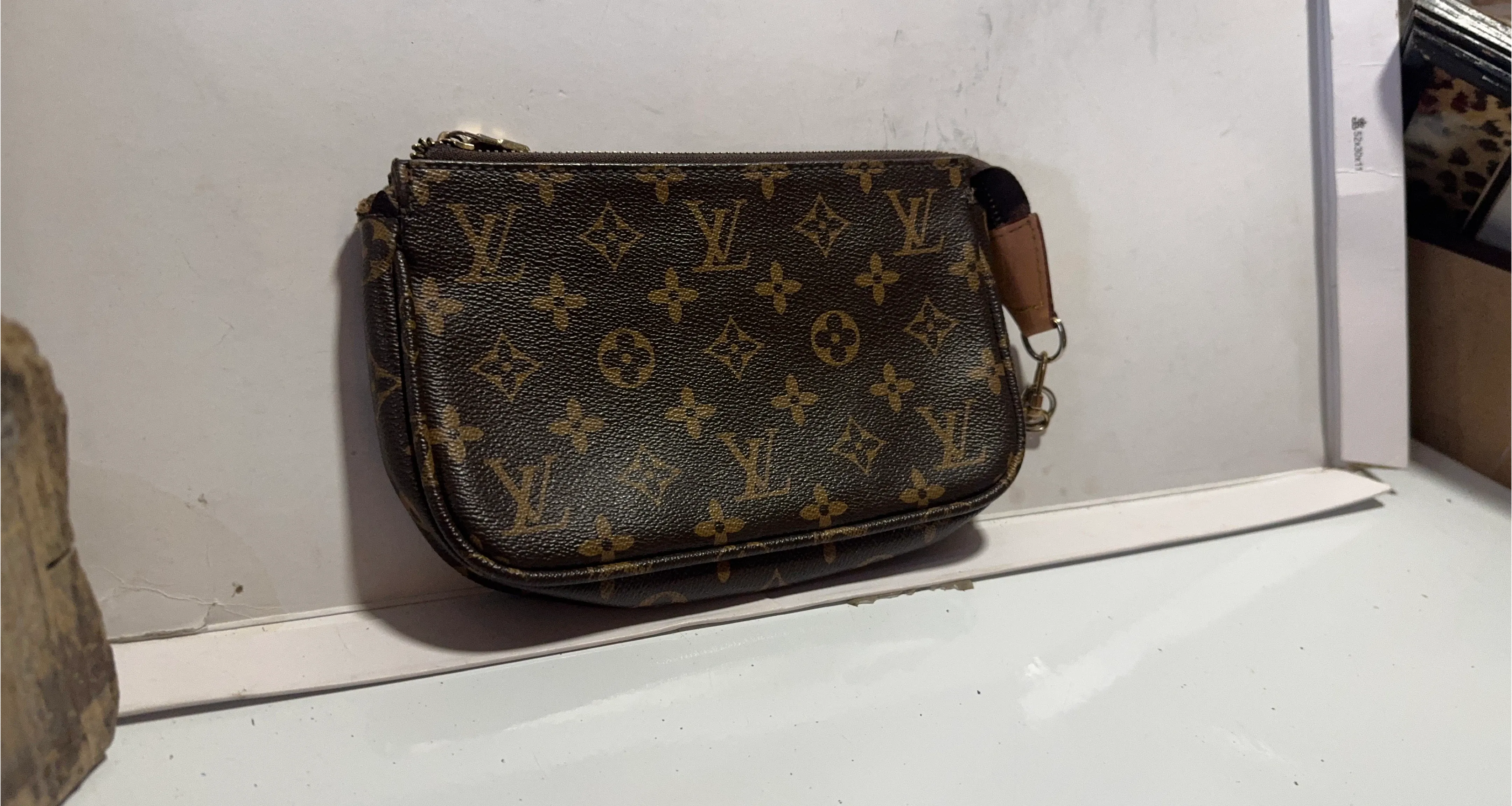 Selling an unverified vintage Louis Vuitton Mini Pochette Accessoires in the classic monogram canvas. Both ripper work as should. Sorry no shoulder strap at this time. No Guarantees, but I h may find one and will add it to it for no charge if it’s not sold by the time of locating one