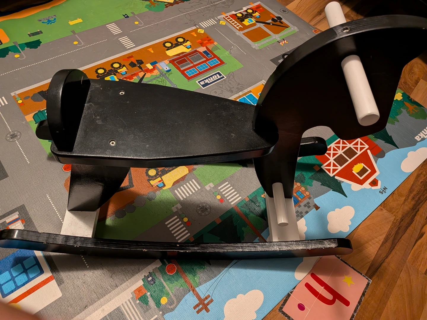 This black wooden rocking horse is a classic toy for little ones. It's made of sturdy wood with smooth, rounded edges. This rocking horse provides hours of imaginative play.