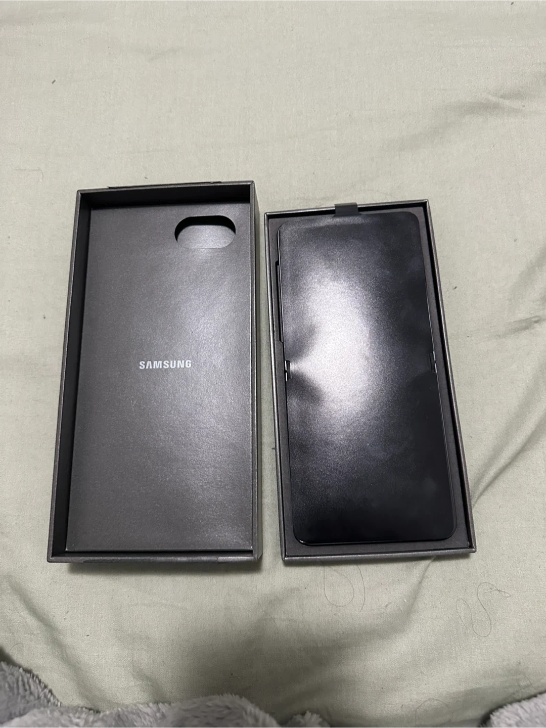 Samsung Galaxy Z Flip 7 smartphone in black. It runs on Android and features a folding display. Original packaging is included. It is a Brand New Phone. Never ever been used. Open box but not even single time used Phone.