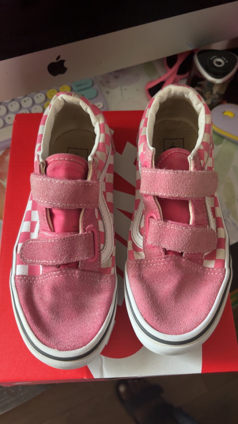 Selling a pair of Vans Old Skool shoes in a fun pink checkerboard pattern!