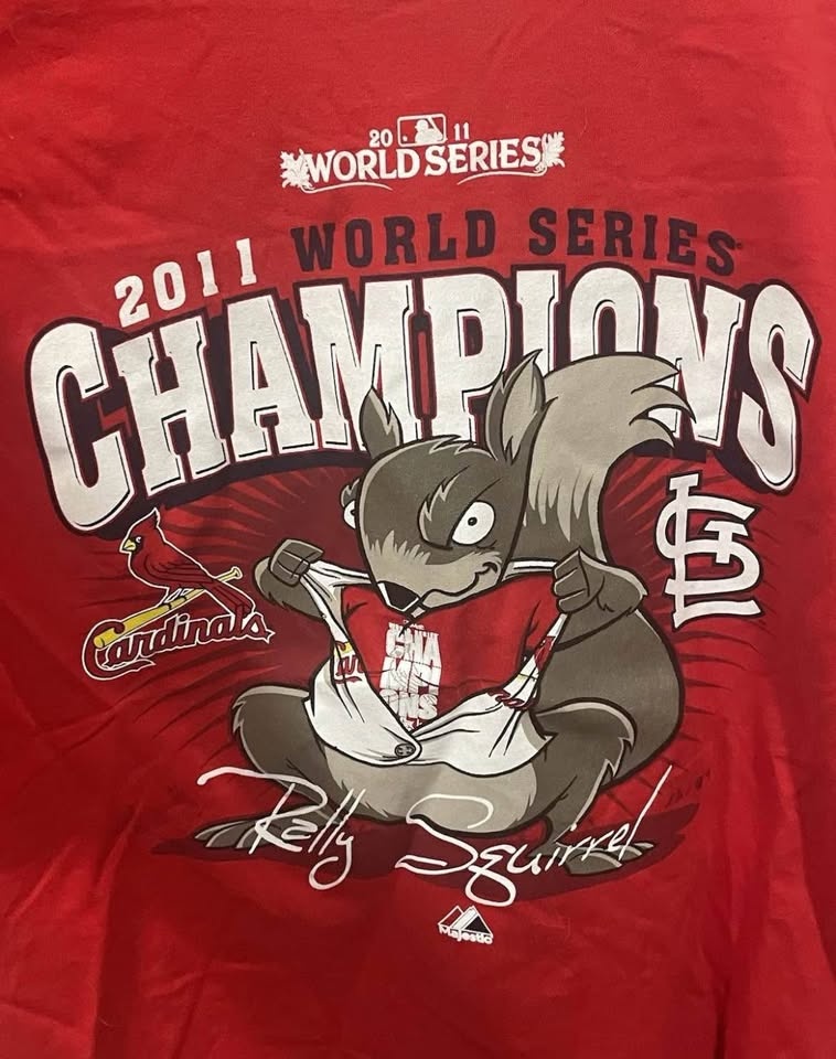 I have two St. Louis Cardinals T-shirts, one is a 2011 World Series championship shirt with the rally girl. The other is gray pretty simple Cardinals T-shirt.