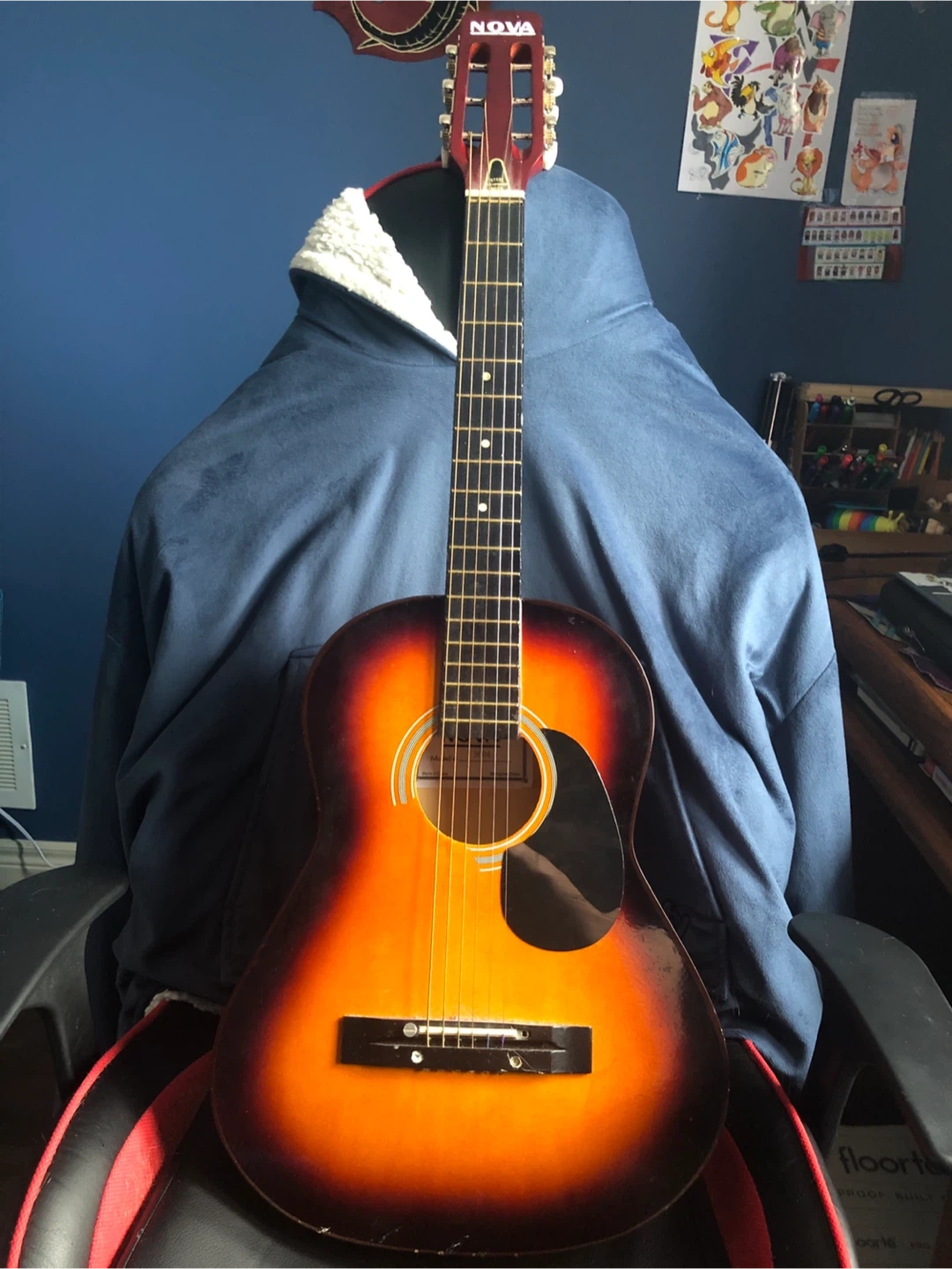 Sunburst acoustic guitar from Nova. This is a great starter instrument for learning to play. It has a beautiful sunburst finish.