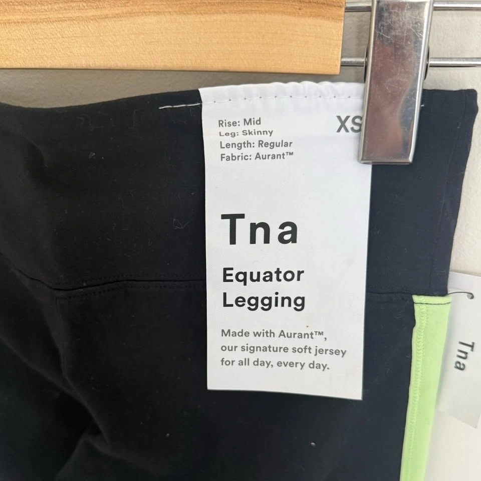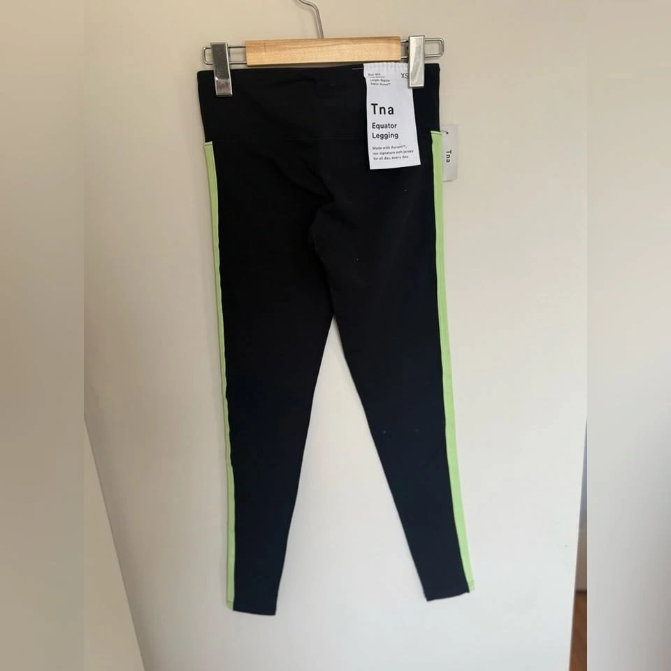 Brand new with tags TNA Equator leggings in a bold black and neon combo. Flattering mid-rise fit with Harant fabric for comfort and stretch — perfect for workouts or everyday wear. Size: XS, Condition: New with tags, Rise: Mid-rise, Inseam: 25”, Fabric: Harant, Color: Black with neon accents. No flaws. Smoke-free, pet-free home.